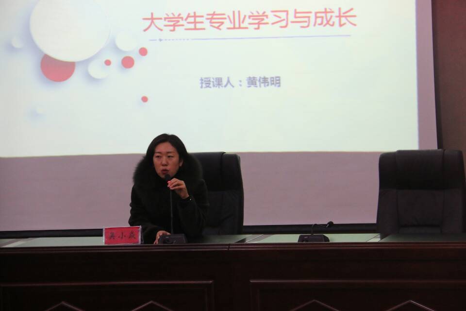 大一新生,讲座由院长黄伟明主讲,院长助理吴小焱主持。