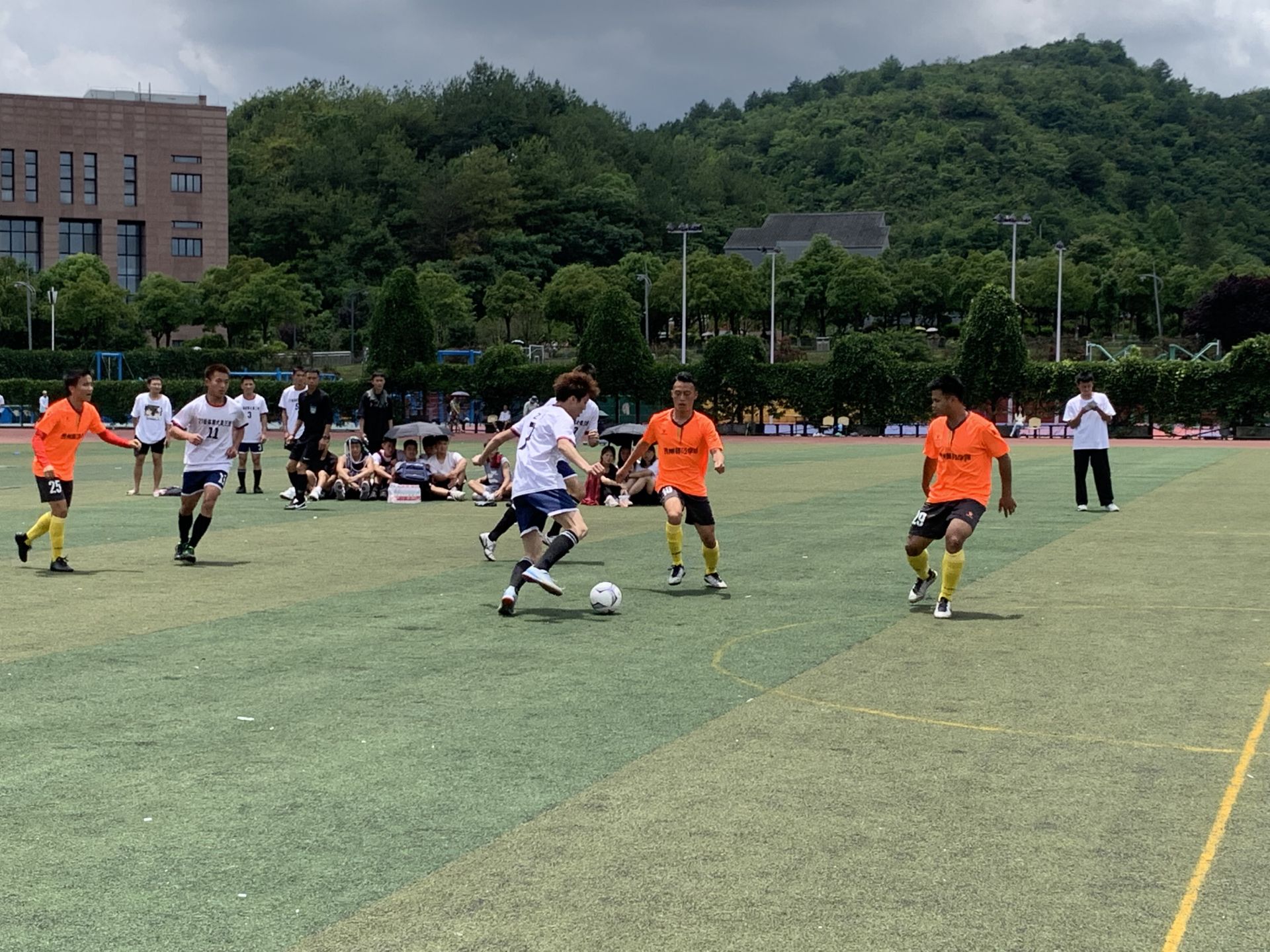团委学生会文艺部的同学带来精彩的舞蹈表演。精彩的表演完毕,全体到场领导共同为揭幕赛开球。