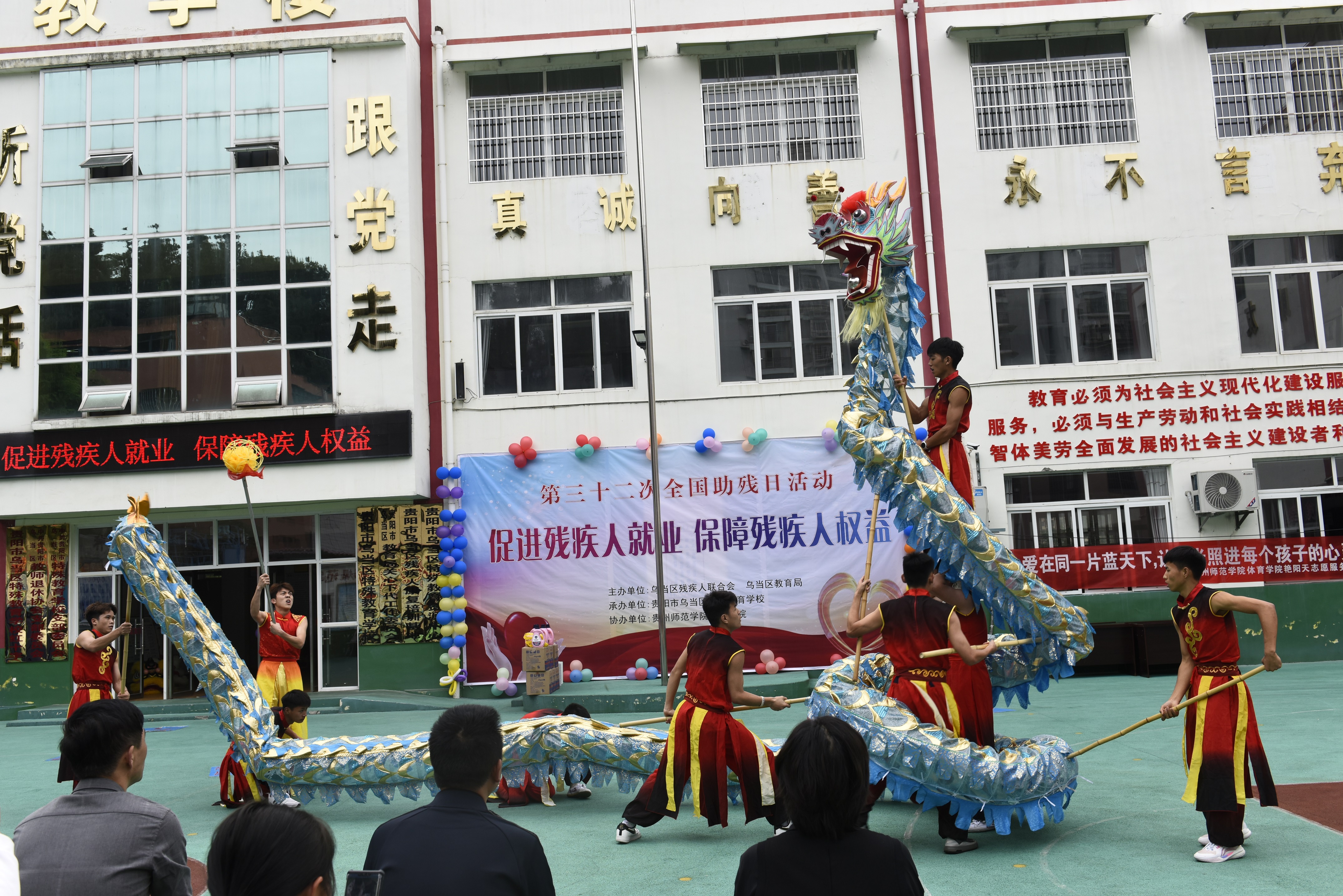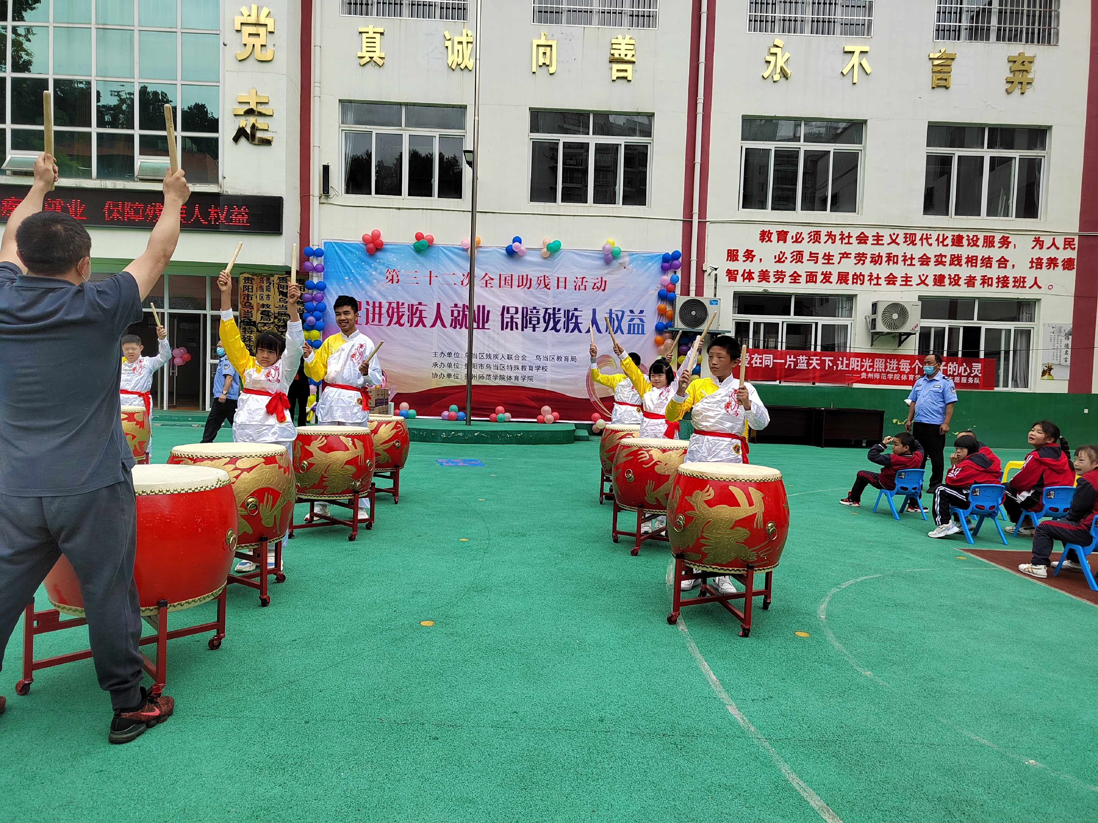 艳阳天志愿服务队精心准备舞龙、舞狮、花样跳绳,精彩表演爆发出阵阵掌声,操场上翻江倒海的长龙、憨态可掬的狮子、律动的长绳,引来孩子们的阵阵惊叹。乌当区特校的孩子们向观众表演了跳舞、架子鼓、叠衣服等一系列活动。51动漫