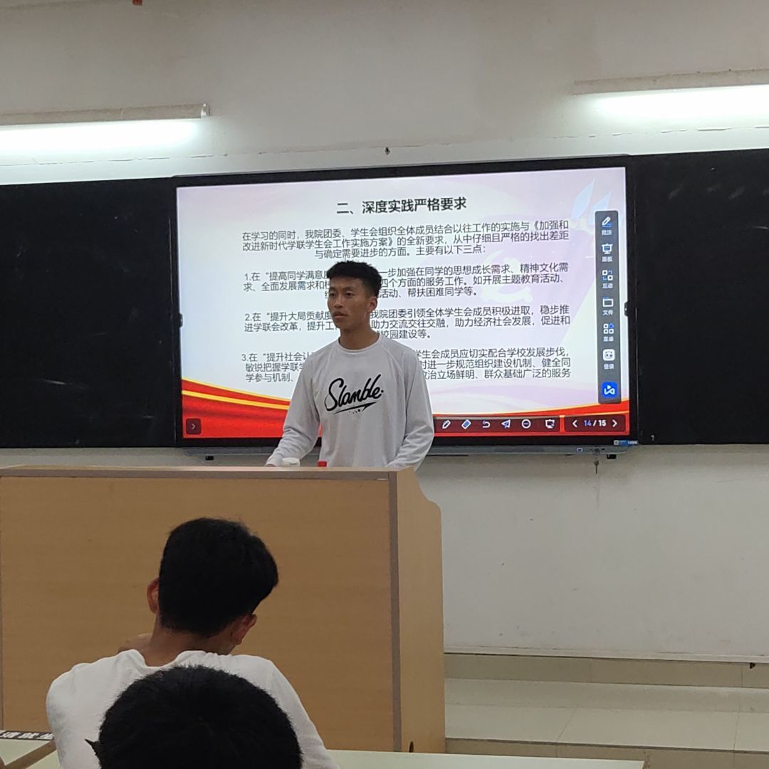 团委学生会在逸夫楼204教室召开2022年春季全体成员团学改革专题培训会。会议由学生会副主席吴巧主持,团委学生会全体成员参加。