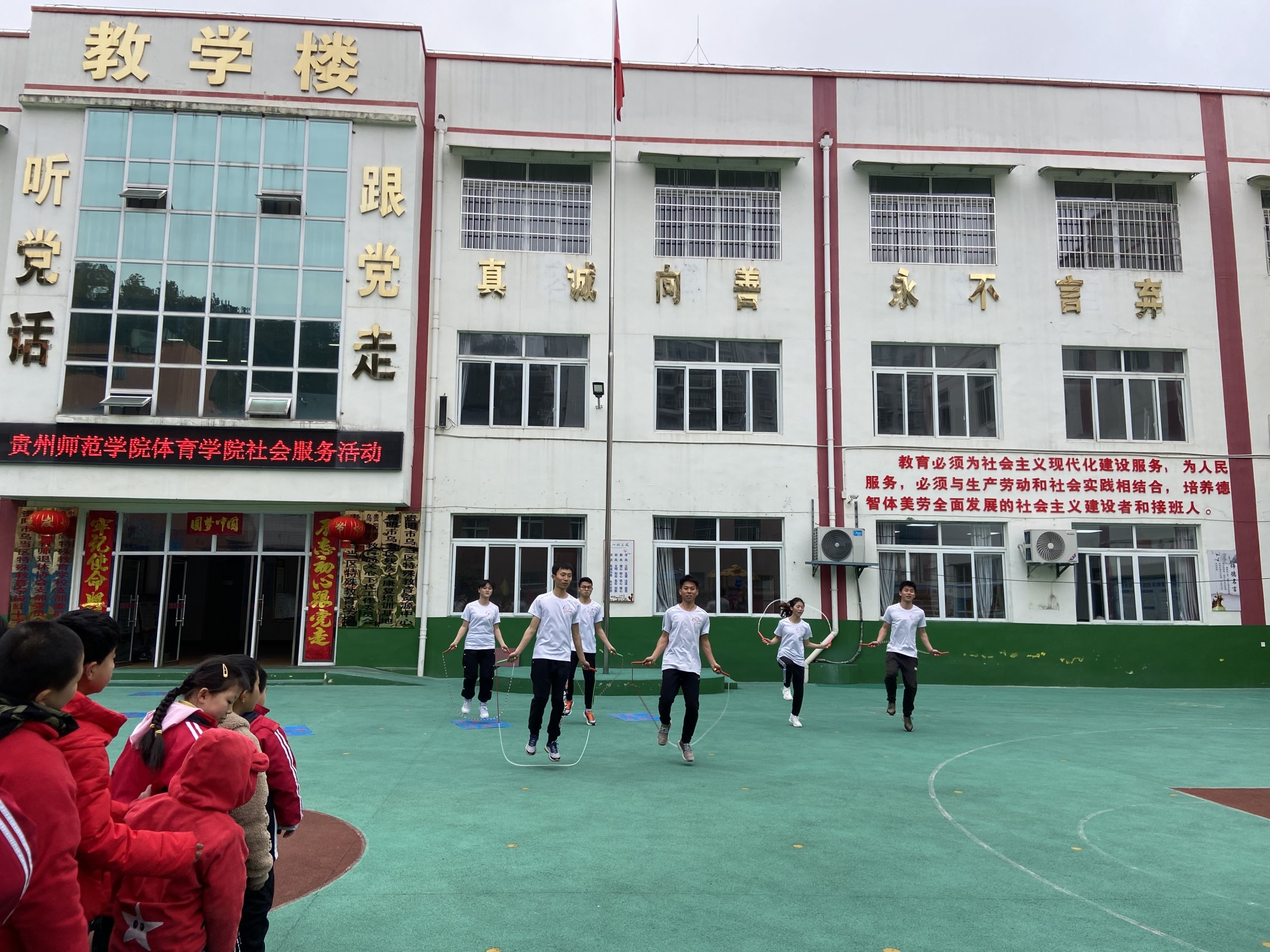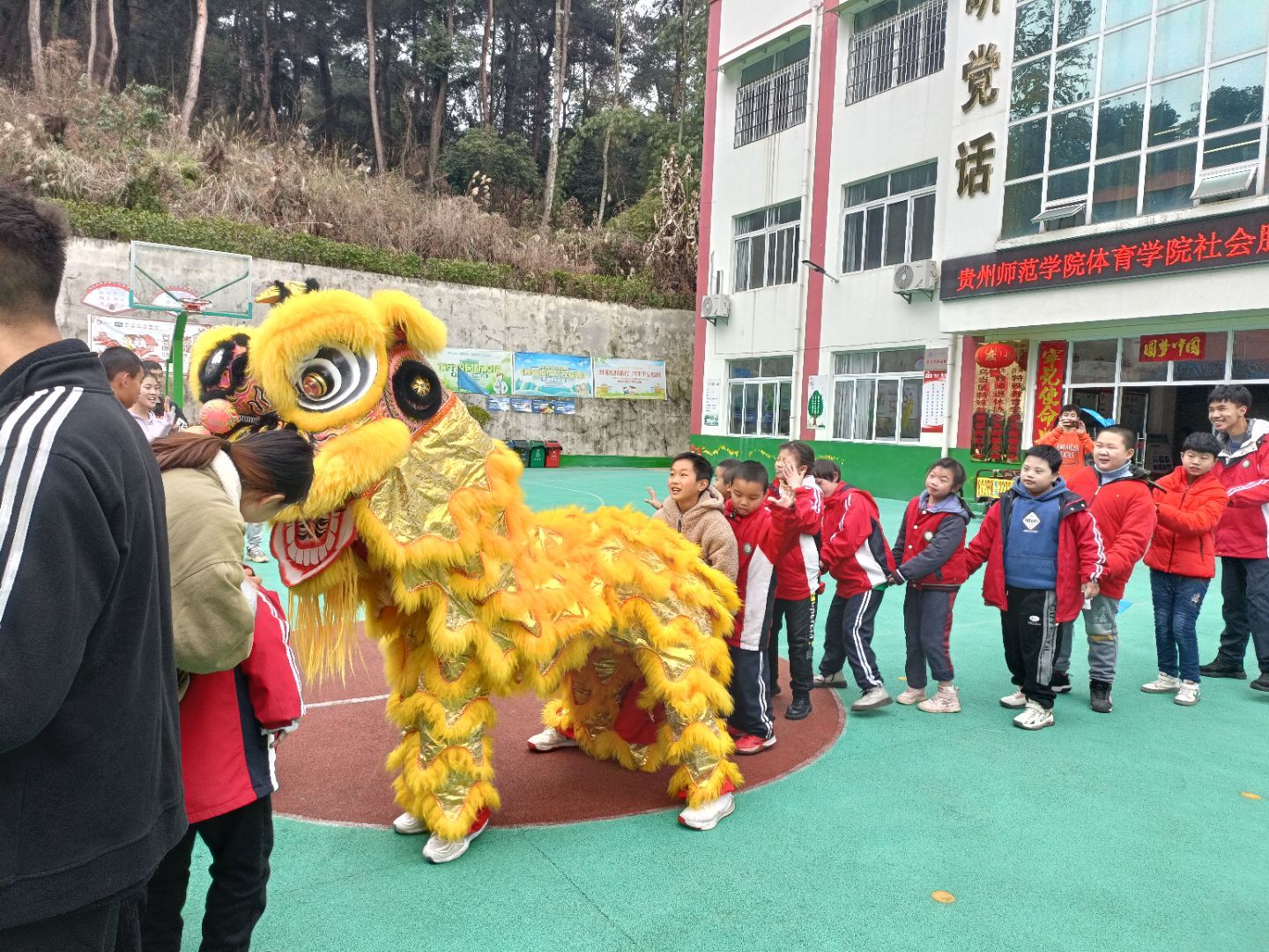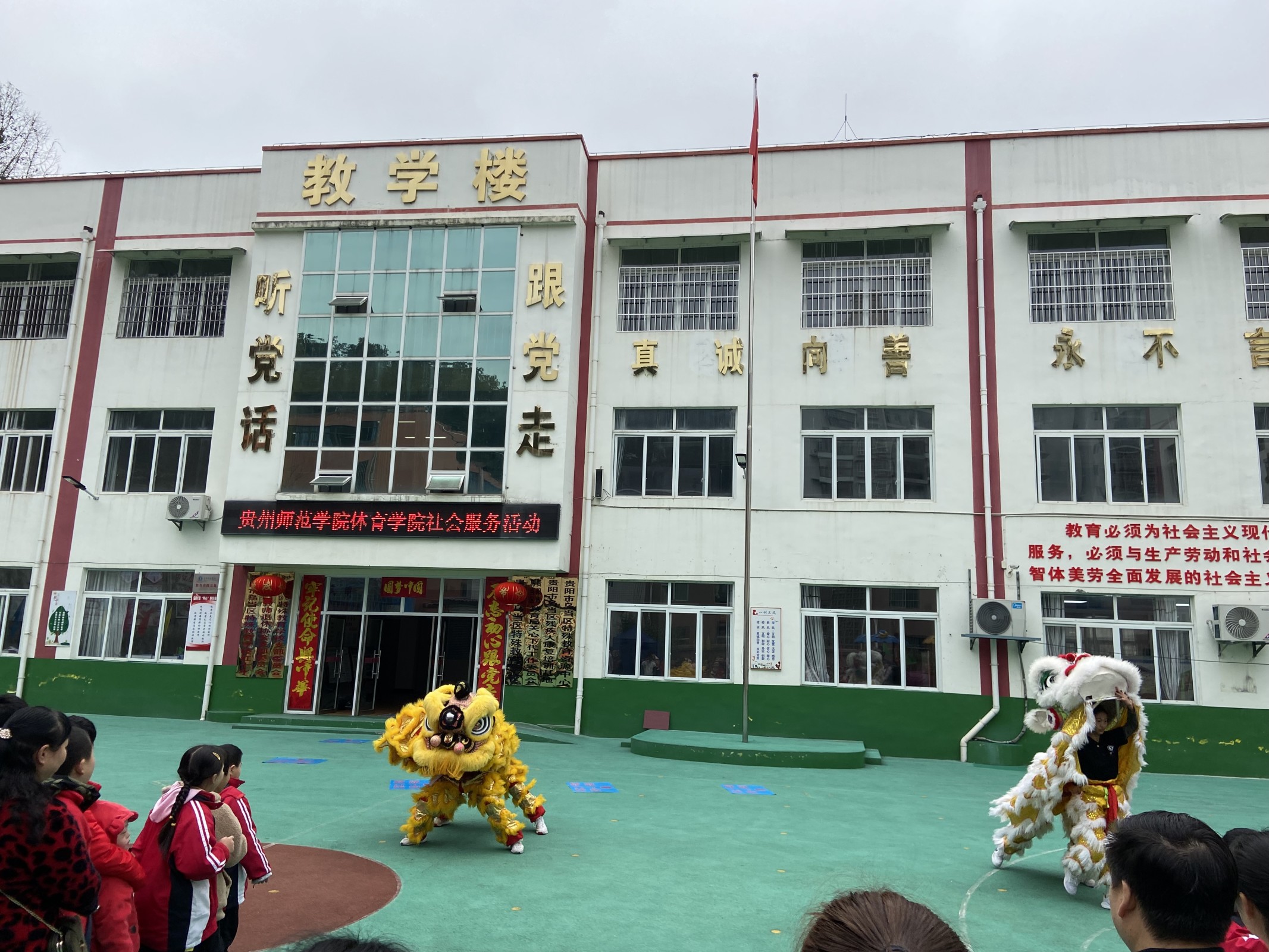 3月4日早上十点,志愿服务队一行24人在体院杨友娣老师带领下,来到贵阳市乌当区特殊教育学校,特校校长任如燕向志愿者们介绍特校学生教室,寝室,活动室,心理咨询室及感官室。随后由同学们分批走进教室与小朋友们互动,带他们唱歌,跳舞,上律动课。特校在大课间组织孩子们有序来到操场,志愿者们为特校的孩子准备了特殊的“”礼物”。首先是杨晓婷同学为小朋友们带来精彩的武术表演,现场气氛异常活跃。紧接着由我校花样跳绳队带来精妙绝伦的花样表演,在孩子们起此彼伏的惊呼声中,舞狮队上场!活灵活现的舞狮表演将孩子们逗得笑声连篇,两头狮子也进入队伍与孩子们互动,让孩子们触摸感受到狮子的身体。在精彩的表演之后就是趣味十足的游戏环节。第一个游戏通过拥抱孩子们,摸着狮子的尾巴行走,让他们感受爱的温暖。第二个游戏通过跳房子来培养孩子们的肢体协调能力,可谓是将本专业的知识活学活用。最后,在孩子们依依不舍的目光中,此次关爱特殊儿童,传承学雷锋精神活动圆满结束!