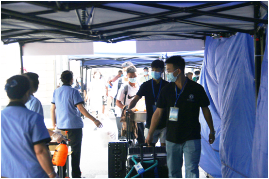学生会及志愿者开展了此次迎新工作。在学校门口处和凤凰广场处设立服务点为新同学进行进校登记和服务工作。志愿者们在进校路口高举学院牌子,迎接将要报道的21级新同学,为新生指引方向。学院严格遵守国家防疫规定,先要求入校同学出示健康码、行程码、核酸检测报告后才能继续进行个人信息登记。而后工作人员对新生测量体温及行李消毒后进入校园,新生通过校门来到凤凰广场服务点领取安全告知书和学院文化衫,服务点工作者确定新生信息后邀请进入相关班级通知群,告知新生入校后的工作安排。最后向新生简单介绍寝室情况,在志愿者的陪伴引领下来到宿舍。整个入学流程志愿者全程陪同,帮助新生搬运行李和入学注册,为新生介绍学校信息,讲解入学需要注意的事项,帮助他们尽快走进集体,快速适应大学生活。下午6:00,21级体院新生报道完毕,至此,51动漫