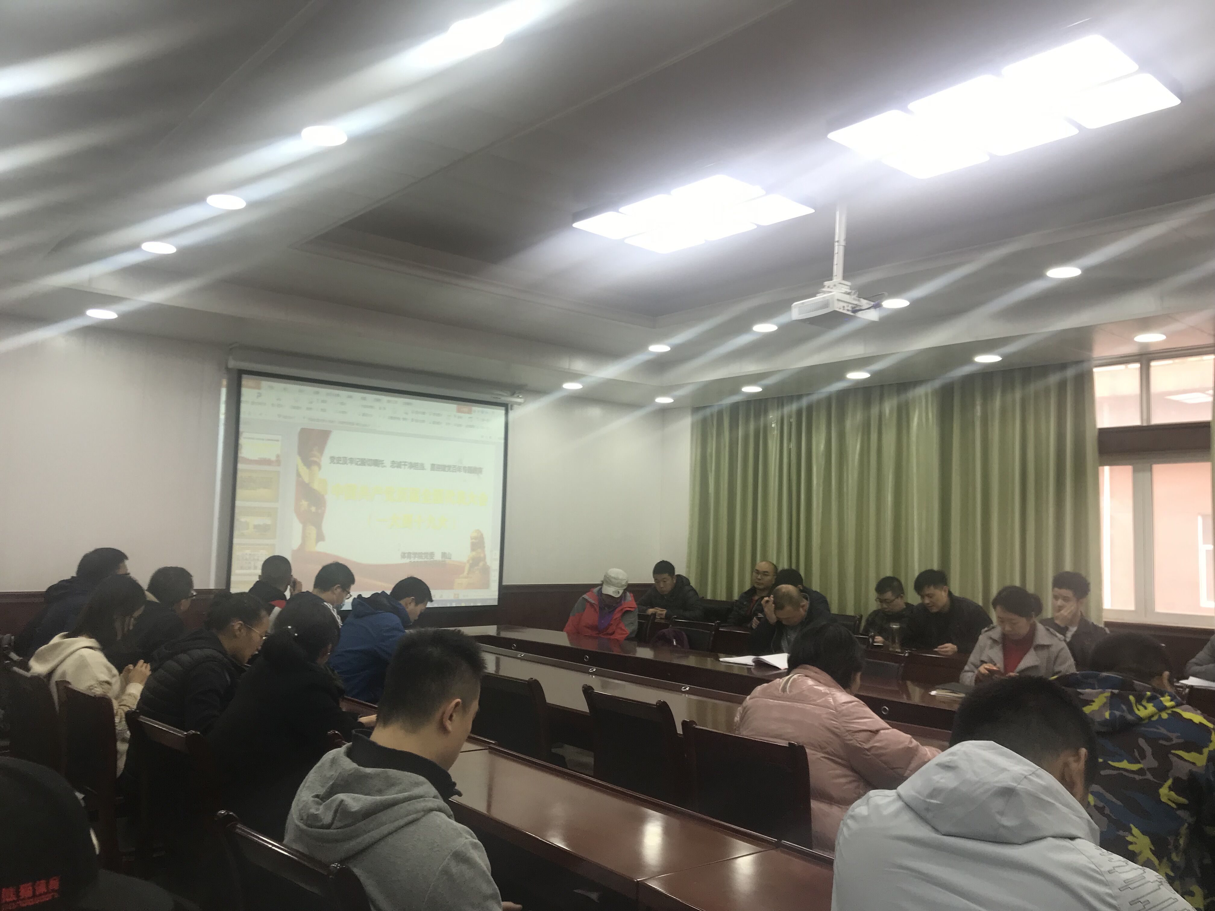 韩山宣讲了《中国共产党历届全国代表大会——从一大到十九大》,韩山在宣讲中谈及,从鸦片战争以来,试图救亡图存的洋务派、维新派、改良派等一代又一代先进的中国人均以失败告终,直至十月革命一声炮响,早期的中国共产主义信仰者以“开天辟地”的壮举开启了领导中国人民走上一条民族独立、解放和复兴之路,每一次党的全国代表大会都是一次对前一阶段工作的总结、当前形势的分析和下一阶段工作的部署,通过对每一次党代会的学习,可以获得一个学习党的历史的一个较为完整、清晰的脉络。可以真正感悟党的百年史就是一部历尽艰辛在苦难中铸就辉煌、历尽磨难在探索中前行、实事求是知错纠偏、展望未来引领伟大复兴的历史。