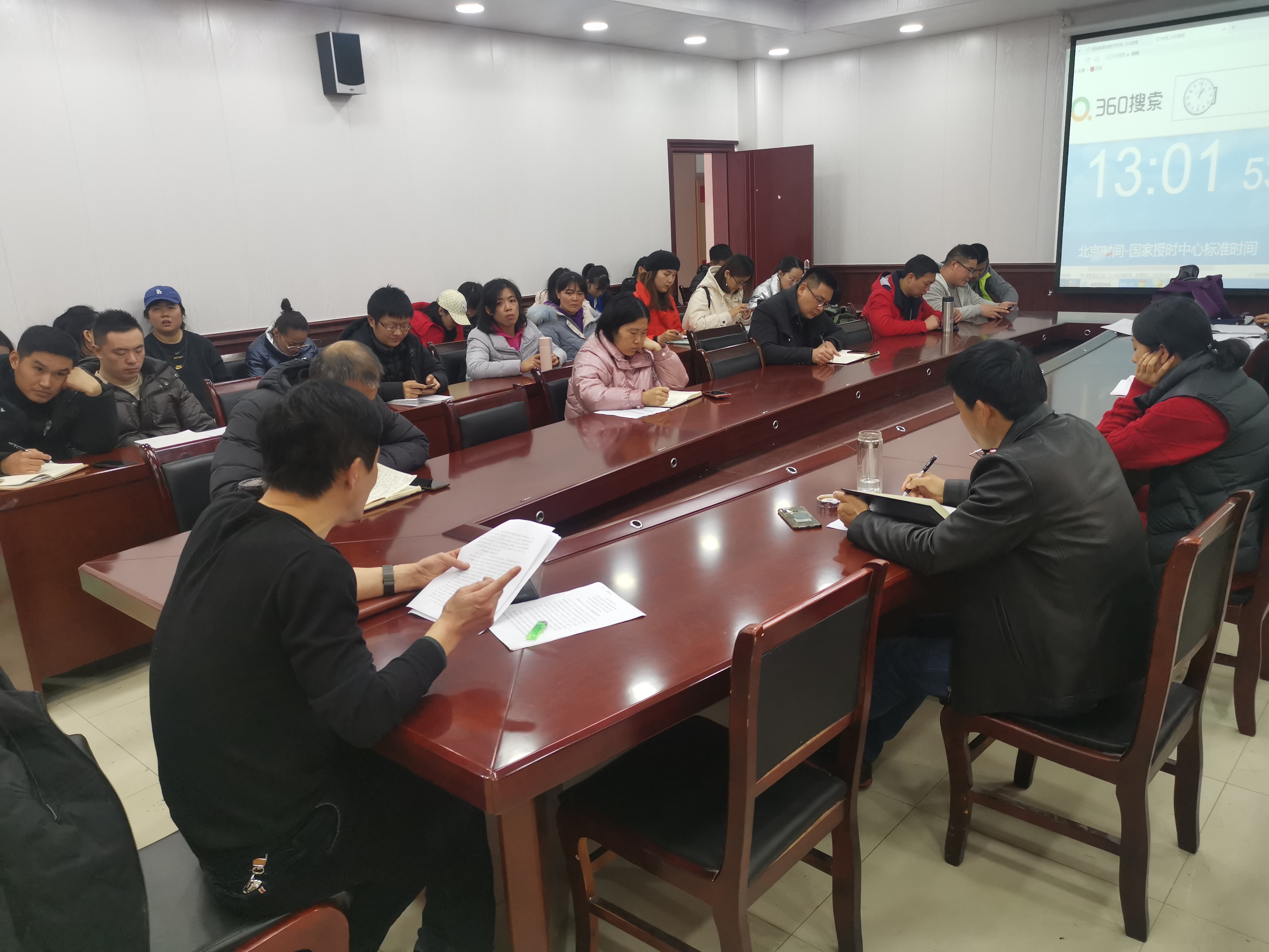 在院会议室召开专项会议传达学习习近平总书记视察贵州指示精神,组织王玉老师先进事迹学习,学院全体教职工参会,会议由院党委书记韩山主持。