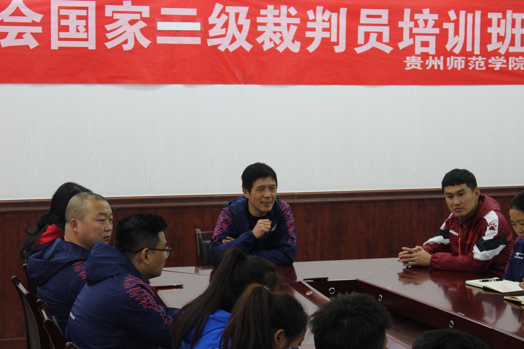 会议室进行,学院领导对此次培训活动高度重视,党委书记韩山、党委副书记邬孟君、副院长李延武、体育教育系主任吴小焱、教学科研管理科科长朱继伟、办公室副主任王亮出席开班仪式,开班仪式由大球教研室足球专项教师刘新冬主持。
