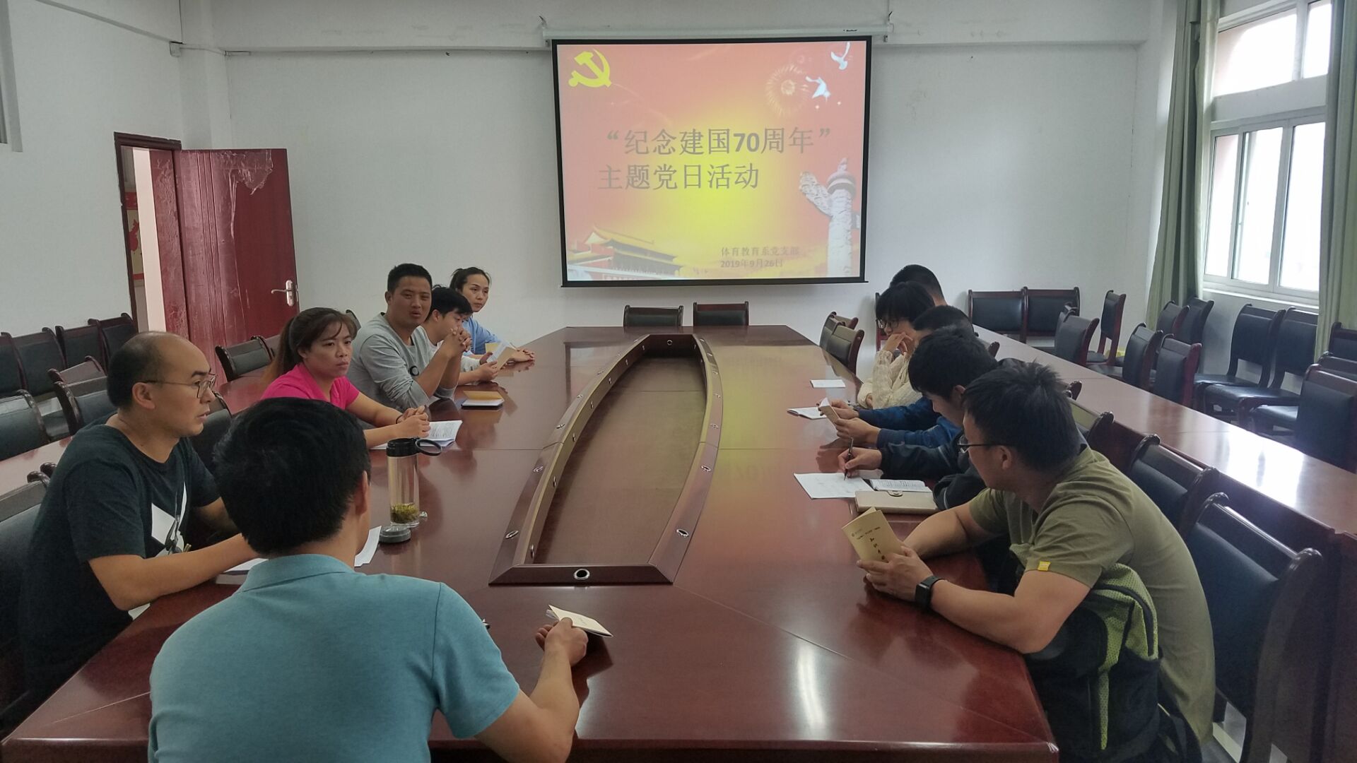 会议室组织开展“不忘初心,牢记使命,纪念建国70周年”主题党日活动,学习活动由支部组织委员刘新冬主持。