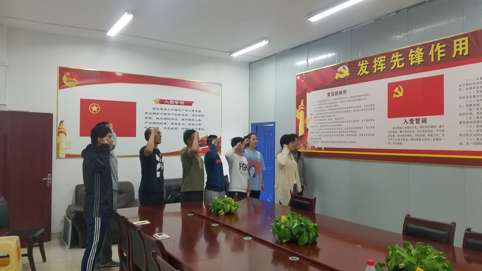 最后全体党员重温入党誓词,齐声歌唱“我和我的祖国”。
