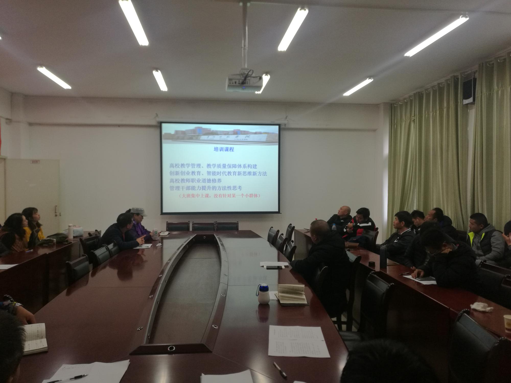 会议室内,“体院大家讲”系列活动如期开展,本次交流的教师为赴西南大学参加教学管理人员素质能力提升培训班的四位学员:分管教学副院长李延武、教学秘书张丹丹、操舞教研室主任钟春、大体俱乐部主任王奉涛以及赴郑州大学参加教研室主任培训班的小球教研室主任李军卫。