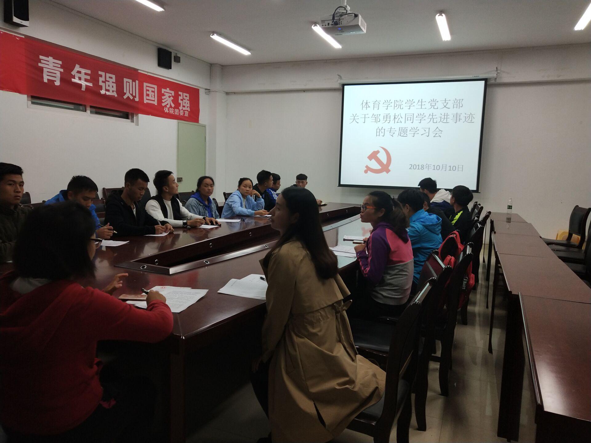 学生党支部关于邹勇松同志先进事迹的专题学习会”进行学习并发表自己的学习感言。