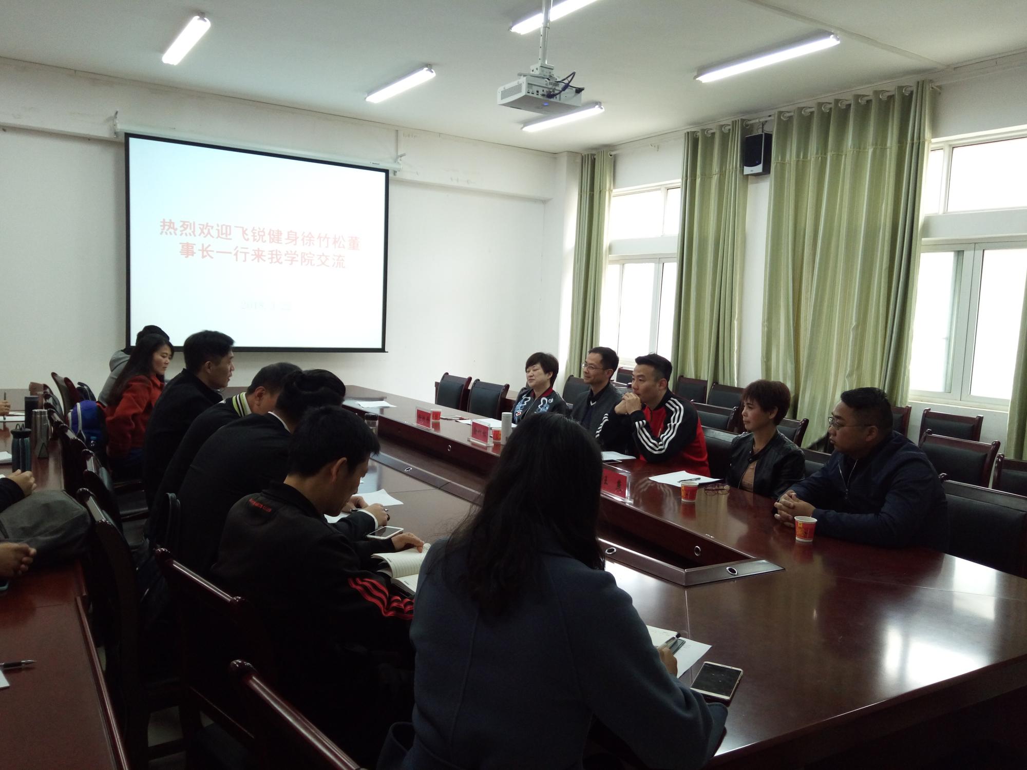 徐竹松向2018届体育教育专业毕业学生介绍了贵州飞锐体育健身俱乐部的总体情况和发展趋势,私教部何尧向学生们解读了2018年招聘信息,以及目前公司主要开展的项目和未来人才发展计划。介绍了全国健身行业的发展情况,体育大健康产业情况,随着我国经济的高速发展,已经进入体育的春天。就贵阳市来讲,目前贵阳有200多家健身俱乐部,健身俱乐部对人才的需求量大。同时也提出了人才需求要求:专业基础扎实,技能突出,有较强的交流和沟通能力。在场的多名同学与两位教练进行了深入交流和招聘咨询。