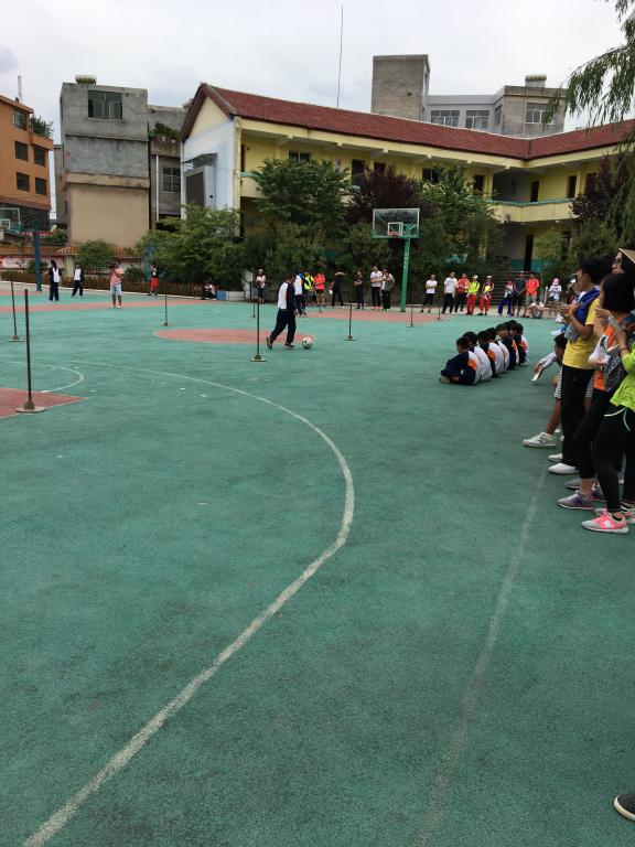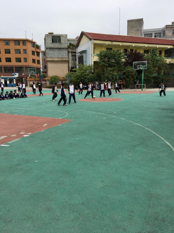 教学的形式,让男同学进行过障碍物的运球练习,女同学进行两人一组传接球练习。课中组织男同学开展5人制足球比赛。虽然该校没有专门的足球场和标准的球门,但是杨老师利用了篮球场地和小球门让学生进行了一场激烈的足球比赛,通过学生们脸上洋溢的表情和他们在赛场上的技术动作,看得出他们对足球的喜欢和对运动的热情。