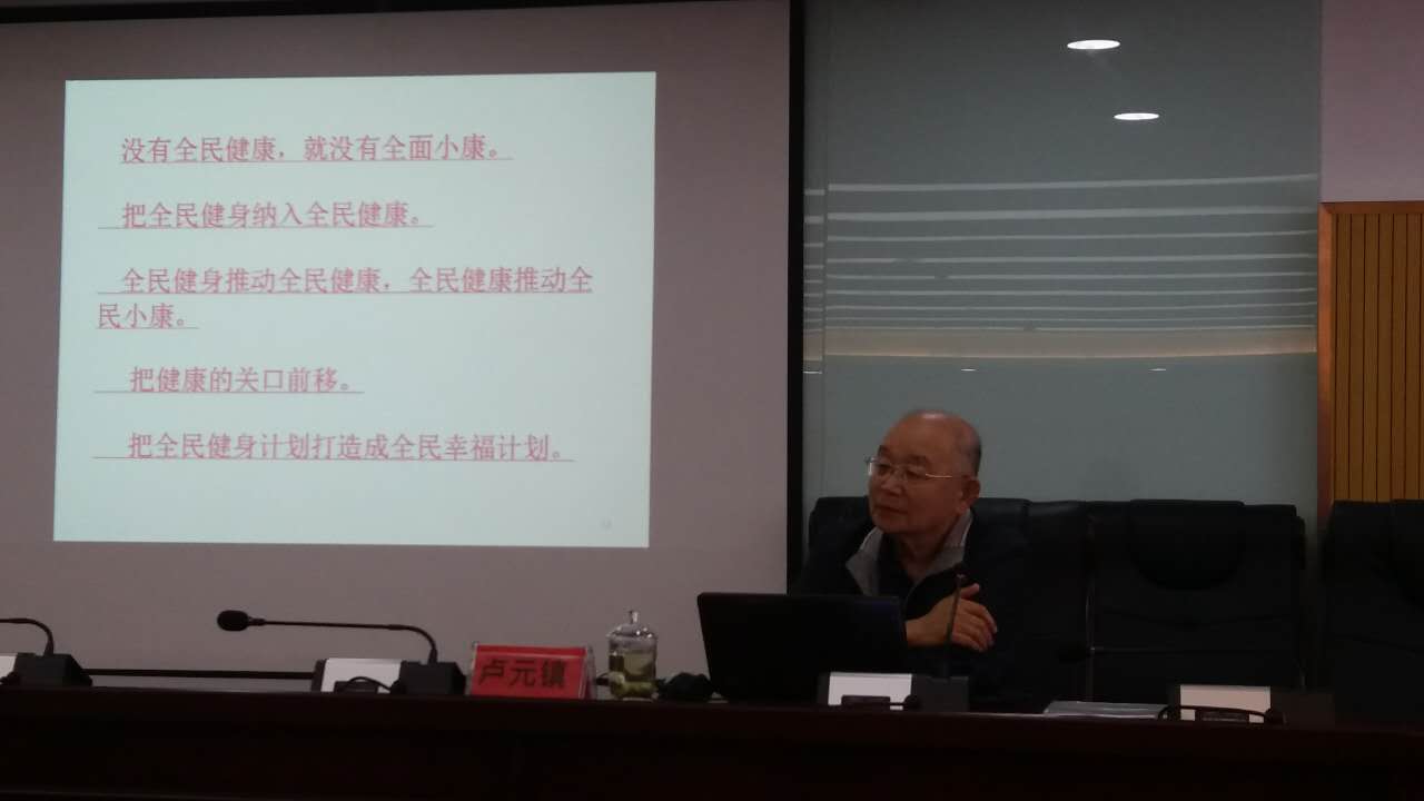 举办的学术讲座活动。华南师范大学博士生导师卢元镇教授、北京体育大学博士生导师任海教授分别做了主题为“全民健身与健康中国”和“青少年体育发展趋势”的专题学术讲座。卢元镇教授以“健康中国2030规划”为背景,以全民健身为主线,阐述了诸多体育社会学方面的热点问题。任海教授结合当前形势,讲授了中外青少年体育的发展趋势。