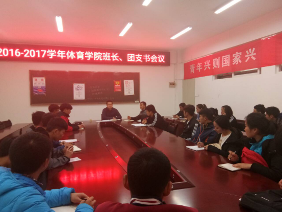 本次会议以“凝聚共识、团结奋进”为主题,具体从体育教育专业2014级3班荣获团中央“活力团支部”称号情况通报、加强学生干部责任意识、加强学生干部之间的联系沟通等三个方面进行了研讨布置。刘华伟要求大家,作为学生中的关键少数,要具备服务同学的意识和能力,要团结好、带领好各自的班级支部,主动带领同学们营造积极向上的学习和生活氛围。会议还表决通过了本学期的学院学生干部例会时间和地点。