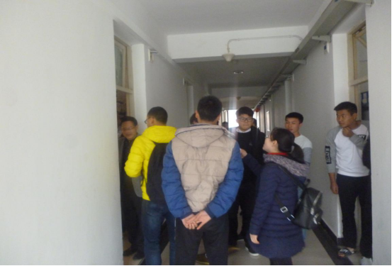 检查团一行走进学生宿舍,仔细查看学生宿舍卫生、安全用电情况,并与学生交流宿舍相关管理问题,做好宿舍日常卫生值日,特别是安全用电、严禁使用大功率电器,安全用电,防止火灾事故发生。要求同学们遵守学校宿舍有关规定,提高安全意识,营造良好的学习、生活环境,提高安全意识和综合素质,做合格的大学生。