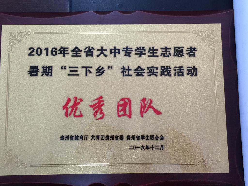 团委“夏梦乡予”社会实践团队荣获2016年全省大中专学生志愿者暑期“三下乡”社会实践活动优秀团队称号,蒲方银、赵琴秀两位同学荣获先进个人称号,团委副书记刘华伟荣获先进工作者称号。
