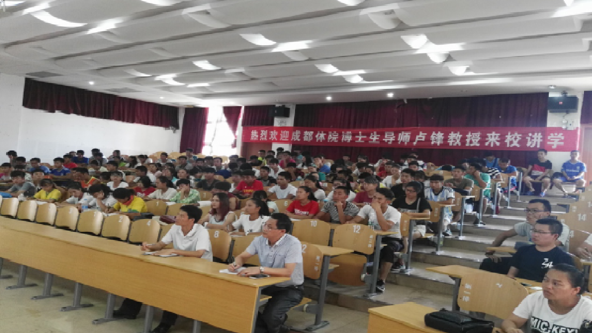 广大师生作了祥细地讲解。随着我国经济、社会的高速发展,人们闲暇时间增加,人们自觉自愿自由参与体育活动不断增加,休闲体育活动必将成为人们乐意体验、参与的休闲活动之一。休闲体育的生活化、多样化、个性化、商业化将成为休闲体育发展的主旋律,休闲体育代表了现代社会体育发展的新趋势。讲座中参加报告会的师生,与卢锋教授积极互动,踊跃提出问题,与卢锋教授进行交流。卢教授的精彩讲座赢得了在场师生的阵阵掌声。