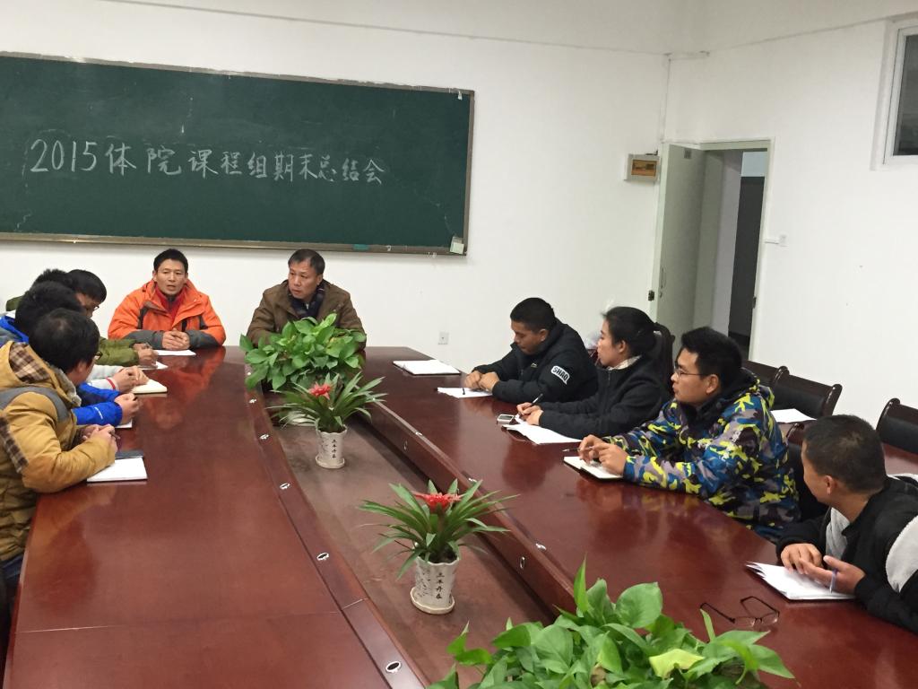 的专业教学及管理等工作进行认真梳理、深刻分析。肖庆群就教研室运行情况汇报了教研室活动开展和教研室所取得成绩:目前试行的学院-教研室-课程组三级责任制和术科考试教考分离获得了学生和教师的一致肯定,术科教研室将坚定不移的继续执行下去。接着全体与会成员围绕怎样做好2016教学、管理等工作进行大讨论,讨论持续一个半小时,最终产生了5个发展性的建议,分别是规章制度文件规范化、器材耗材落实责任到位、课程组组长权责到位制、竞赛训练常态化和竞赛成绩体现、申请热门小球专项发展课。李延武当场针对五个发展性议题进行落实到人,要求大家尽快接洽相关部门处理。