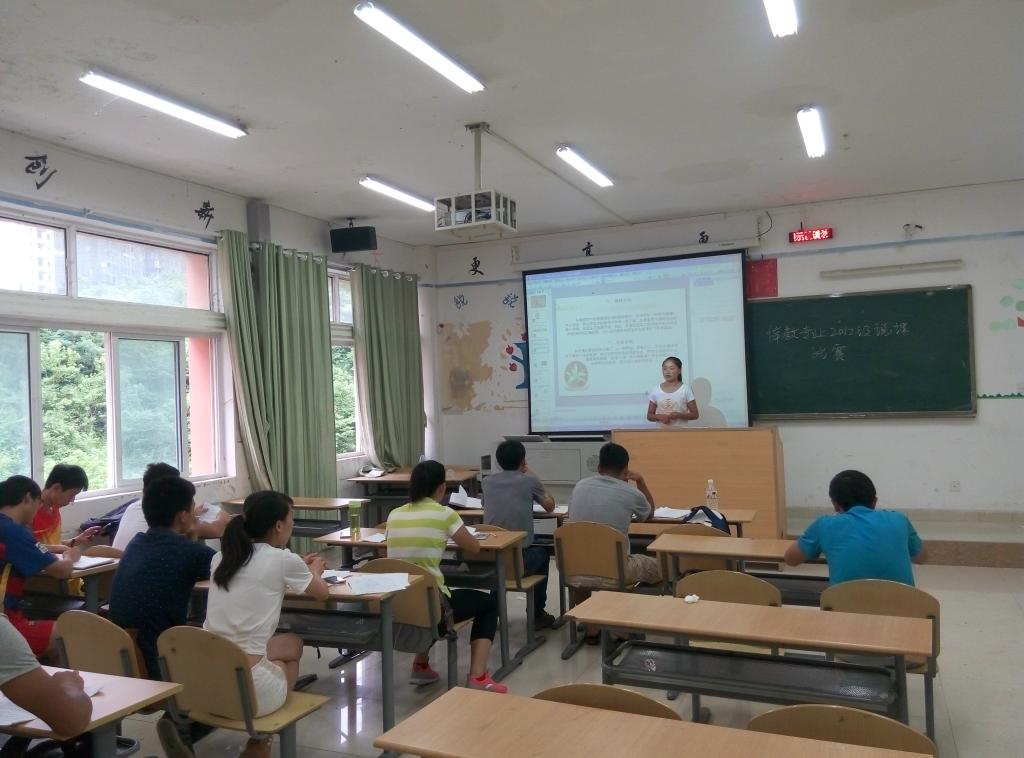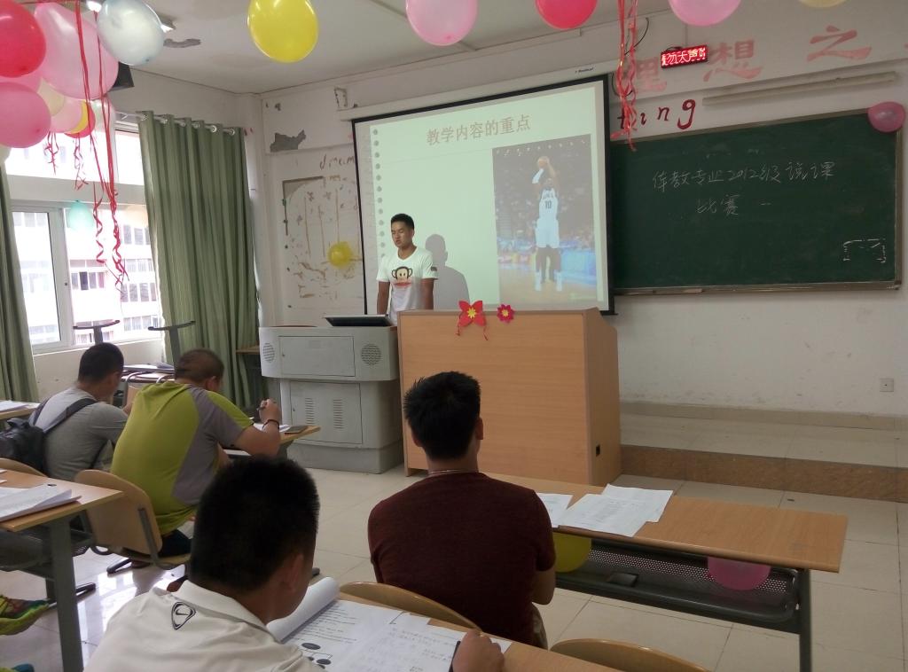 2012级体育教育专业的教学实习将在下学期进行,本学期末在教学实习准备阶段,为使下学期的实习工作能够顺利开展,体育教育专业2012级157名学生,分为37个导师制指导小组,每小组在导师的指导下,先在每个组内进行评比,推选出一名学生代表,参加专业说课比赛。由小组推选出来的37名学生经过初赛,7月3日进行了说课比赛决赛,共评选出一等奖三名、二等奖五名、三等奖八名、优秀奖若干名。