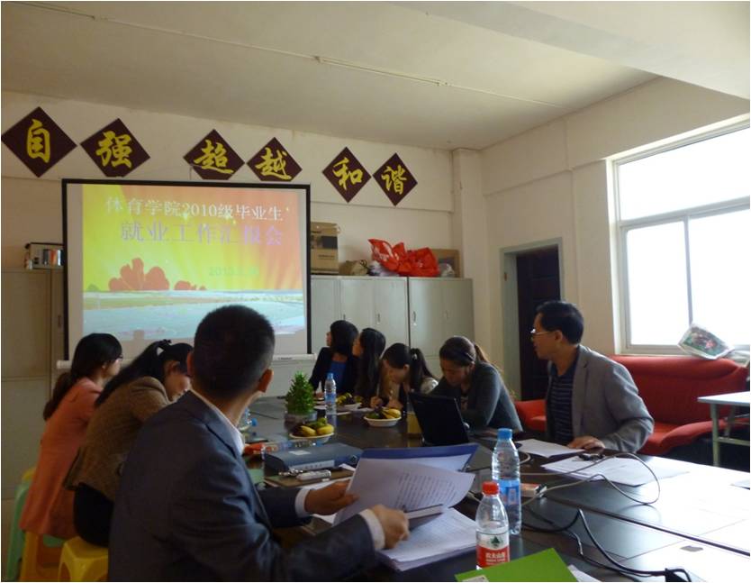 黄天明书记就体院2013届毕业生就业情况做了相关汇报工作,体院2013届毕业生虽为43名专科生,但在学校和51动漫