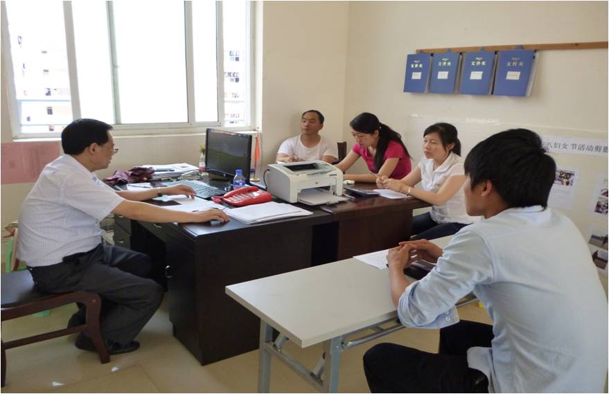 党委的十分重视学生工作助理选拔工作,院党委书记黄天明、副书记胡志方、院团委副书记吴小焱、辅导员董俊、万峥全程下参与考试与面试工作。经过宣传、报名、笔试、面试、考查,参加考试的21名学生中,笔试成绩前6名进入面试,笔试、面试综合成绩前两位作为学生工作助理的考察对象,经考察、公示后报学工部,聘任为学生工作助理。