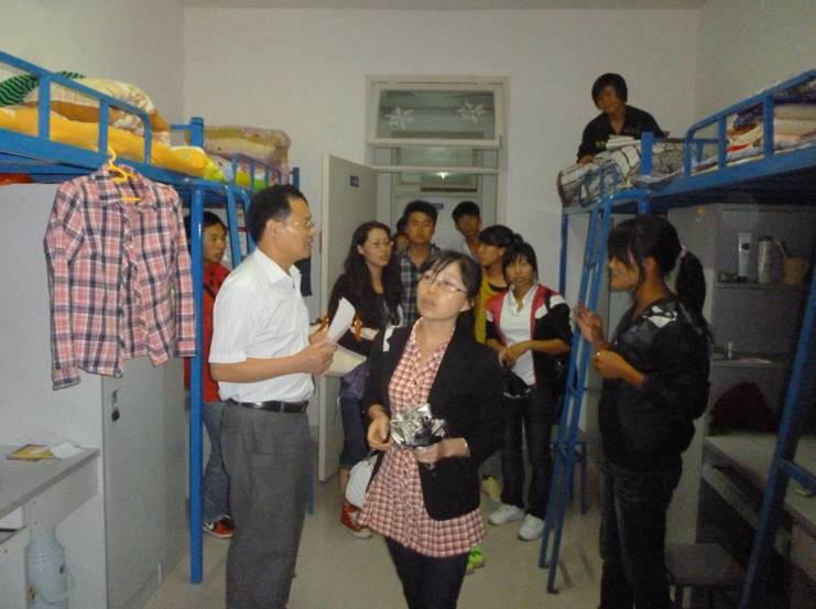领导和辅导员到宿舍看望新生