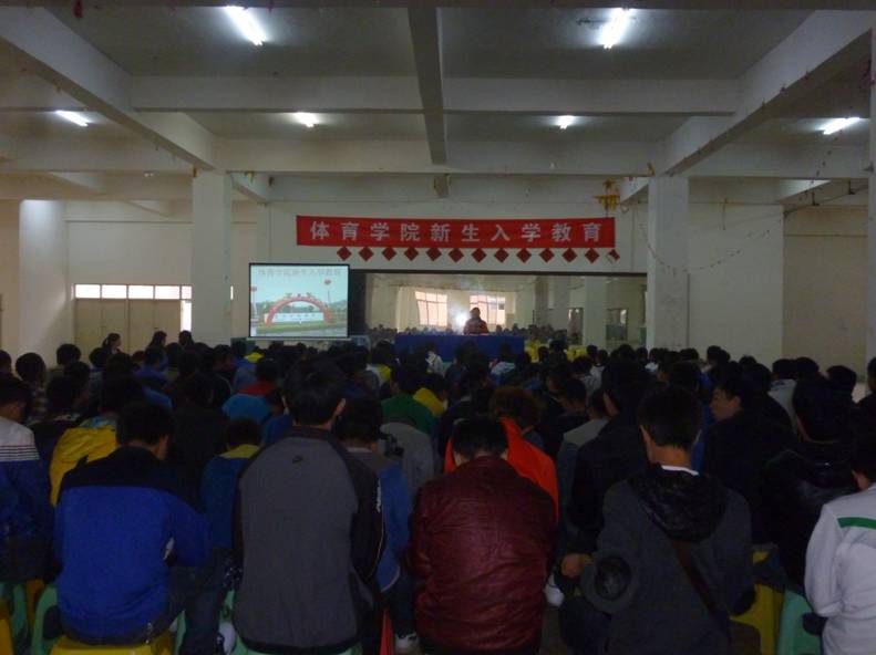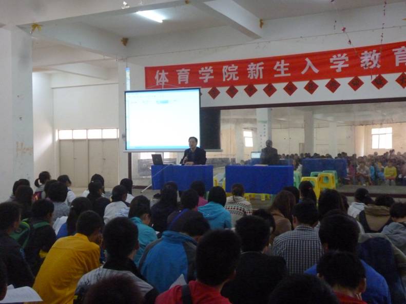 全体教职工对2012级新同学的到来表示热烈的欢迎,并对新同学提出了要求和希望。要求新同学认真参加入学教育,遵守大学生行为规范,了解、熟悉学校各种管理制度,为今后的大学学习、生活打下一个好良好地基础。同时希望大家珍惜美好的大学时光,认真学习、刻苦锻炼、努力成才。张竞红院长对体育专业课程设置,专业理念,专业特色等进行了介绍,使新同学明确专业学习目标,规划自己四年的大学生涯。两天的入学教育中,还学习了《51动漫