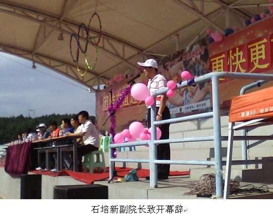 党总支书记黄天明讲话并宣布开幕,他相信同学们在此次运动会中一定会为全校师生奉献一场场精彩的比赛,充分展现朝气蓬勃,奋发向上的大学生精神。