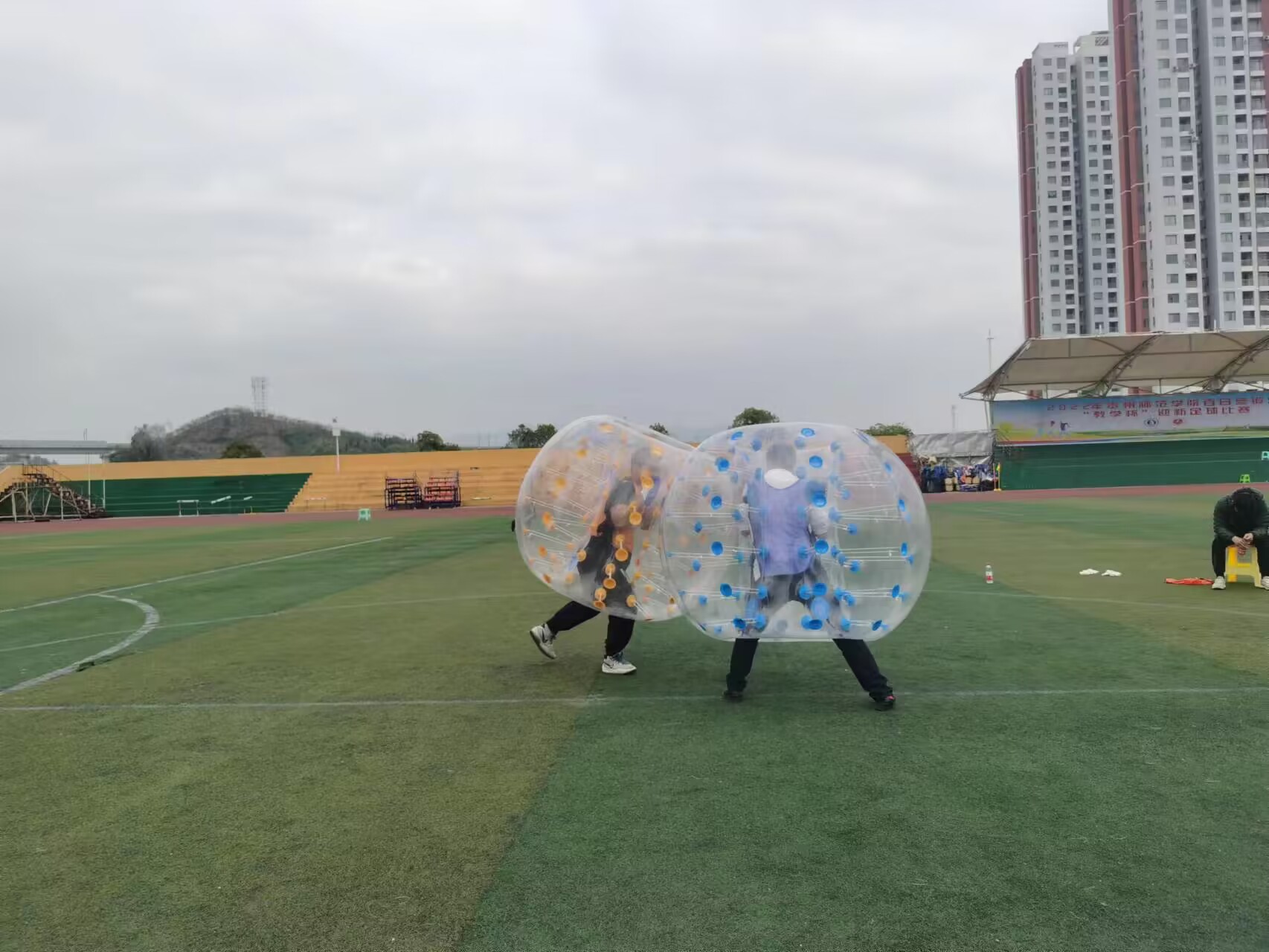 拔河友谊赛结束,老师们分成了4组,在我院休闲体育学生组成的裁判队伍下,完成了飞盘、碰碰球、毛毛虫这几个项目的比赛。老师们在各项目中团队协作,积极作战,比赛异常激烈,永不言败的体育精神展在这里得到了很好的诠释。