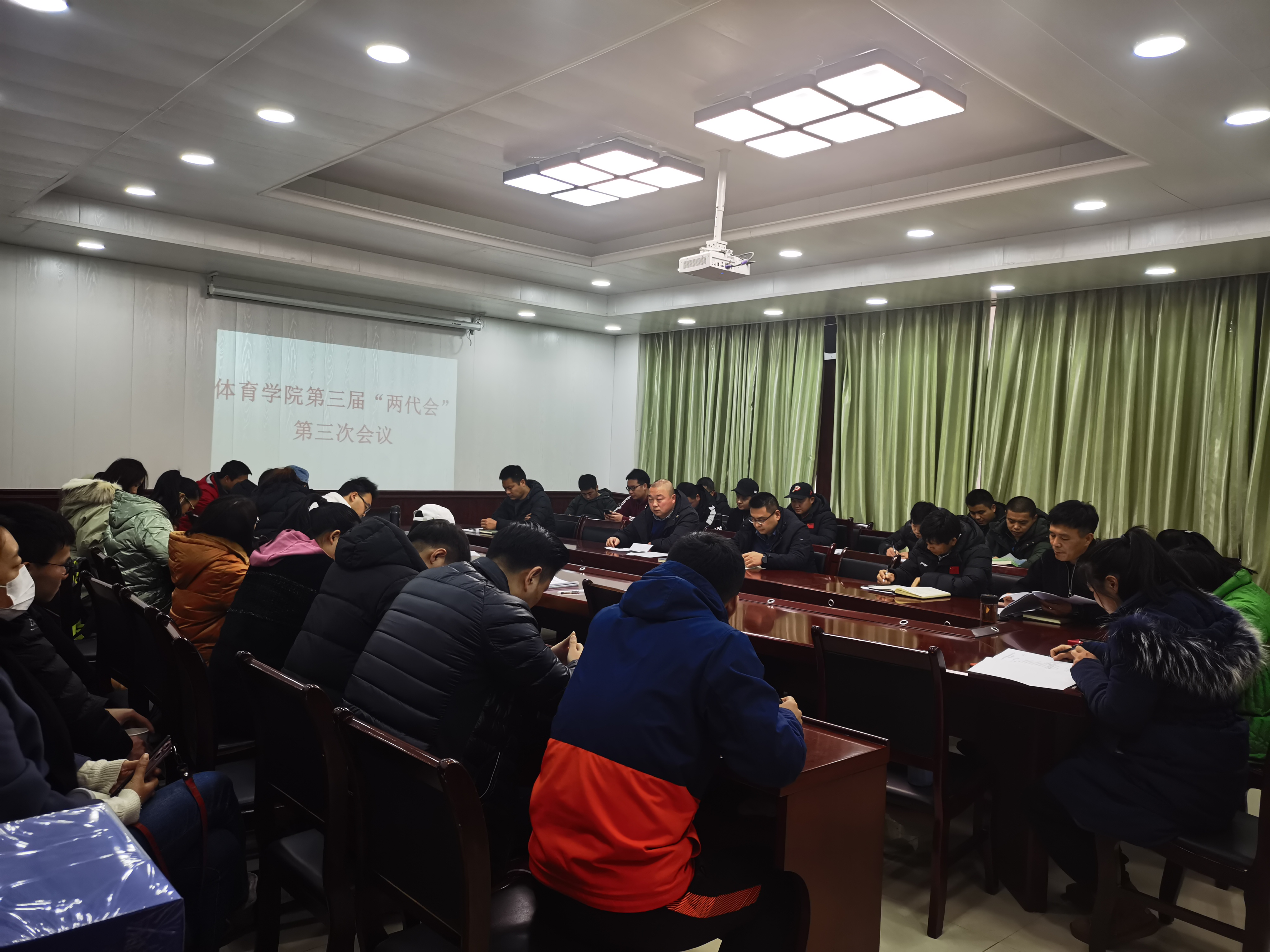 韩山表示,二级“两代会”是教职工行使民主权利、参与民主管理、表达利益诉求的基本渠道和直接载体。本次学院“两代会”的规范有序召开,大力推进了学院院务公开,畅通了教职工诉求渠道,学院将进一步发挥工会、教代会作用,团结带领全院教职工,以更加饱满的工作热情投入到学院各项工作的中,在新的一年中再创佳绩!此次会议在体院副院长李延武的闭幕祝福中圆满结束!