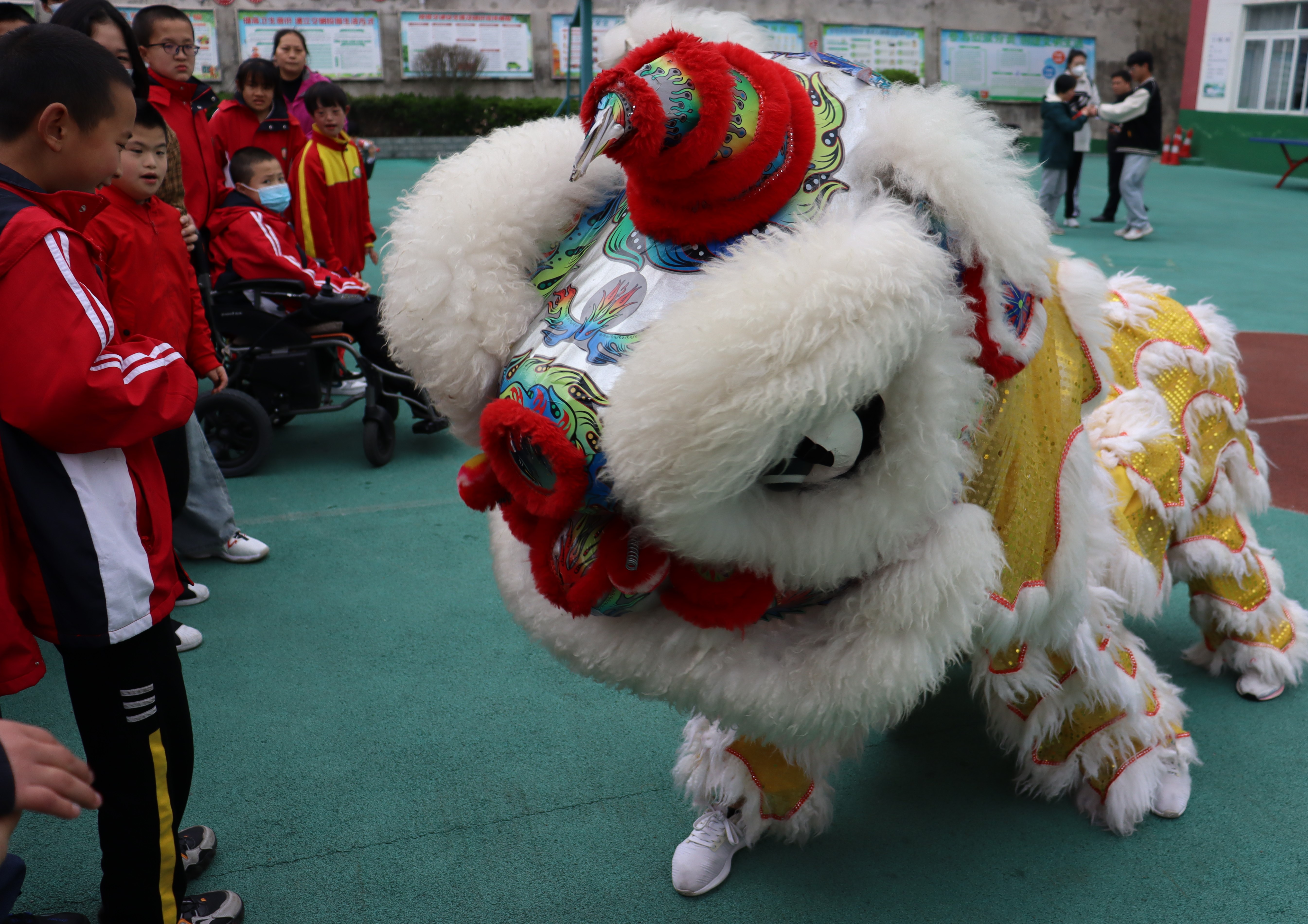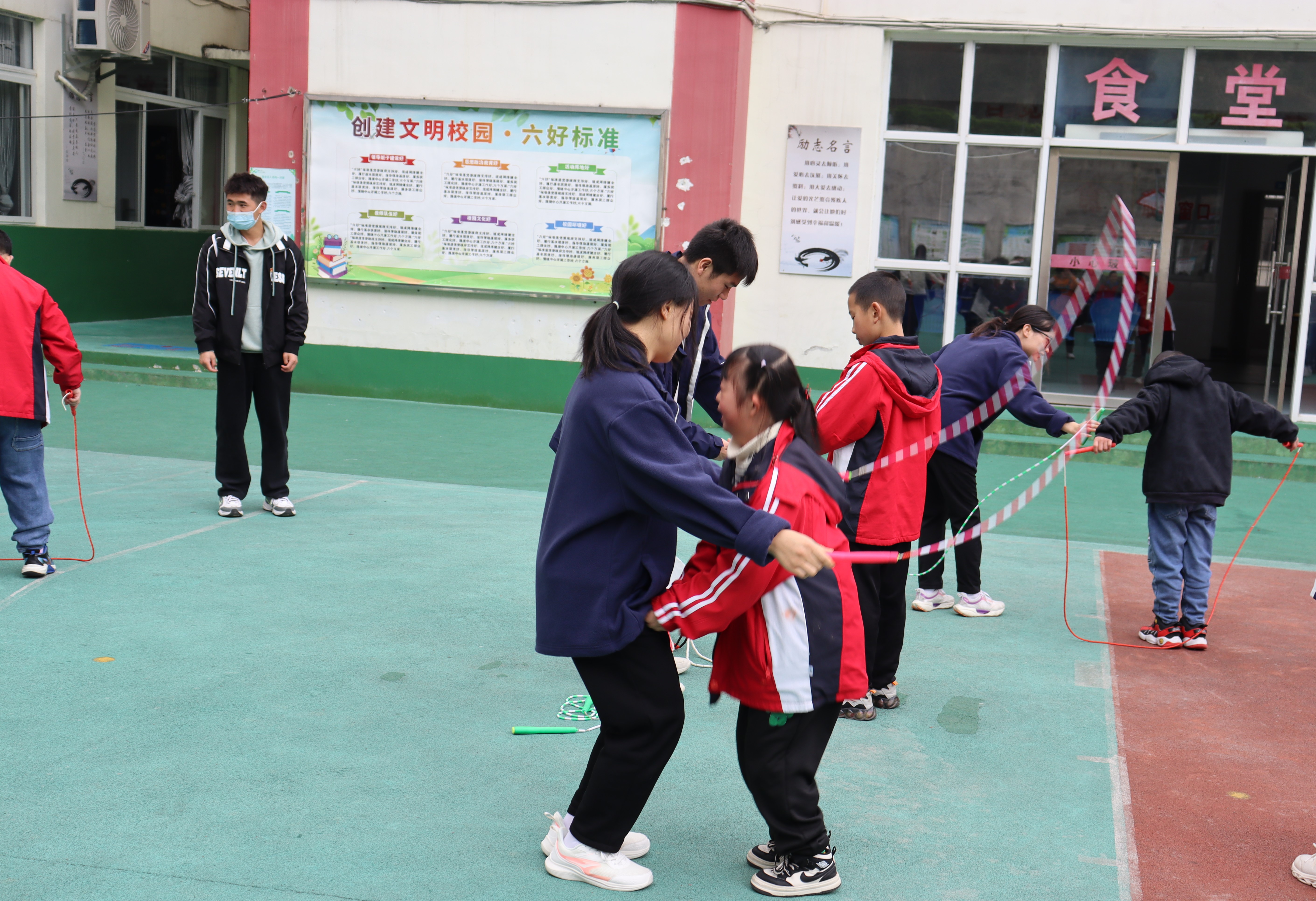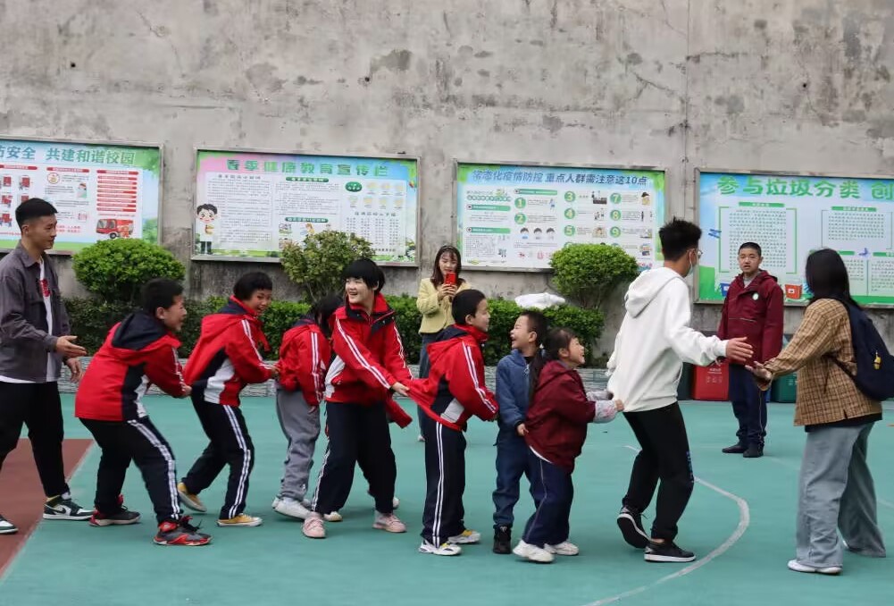 特色社团“舞狮社团”带去了的精彩表演,现场精彩的舞狮表演,小朋友们喜笑颜开……舞狮与孩子们进行快乐的场边互动,和孩子们近距离接触,感受运动的魅力。随后,两位志愿者给孩子们带来精彩的舞蹈表演。“星跳·花样跳绳队”压轴登场,场上“绳舞飞扬”,为小朋友们展现出了不一样的跳绳。最后,志愿者们带领小朋友一起做游戏,带去小礼品一一向小朋友们发放……