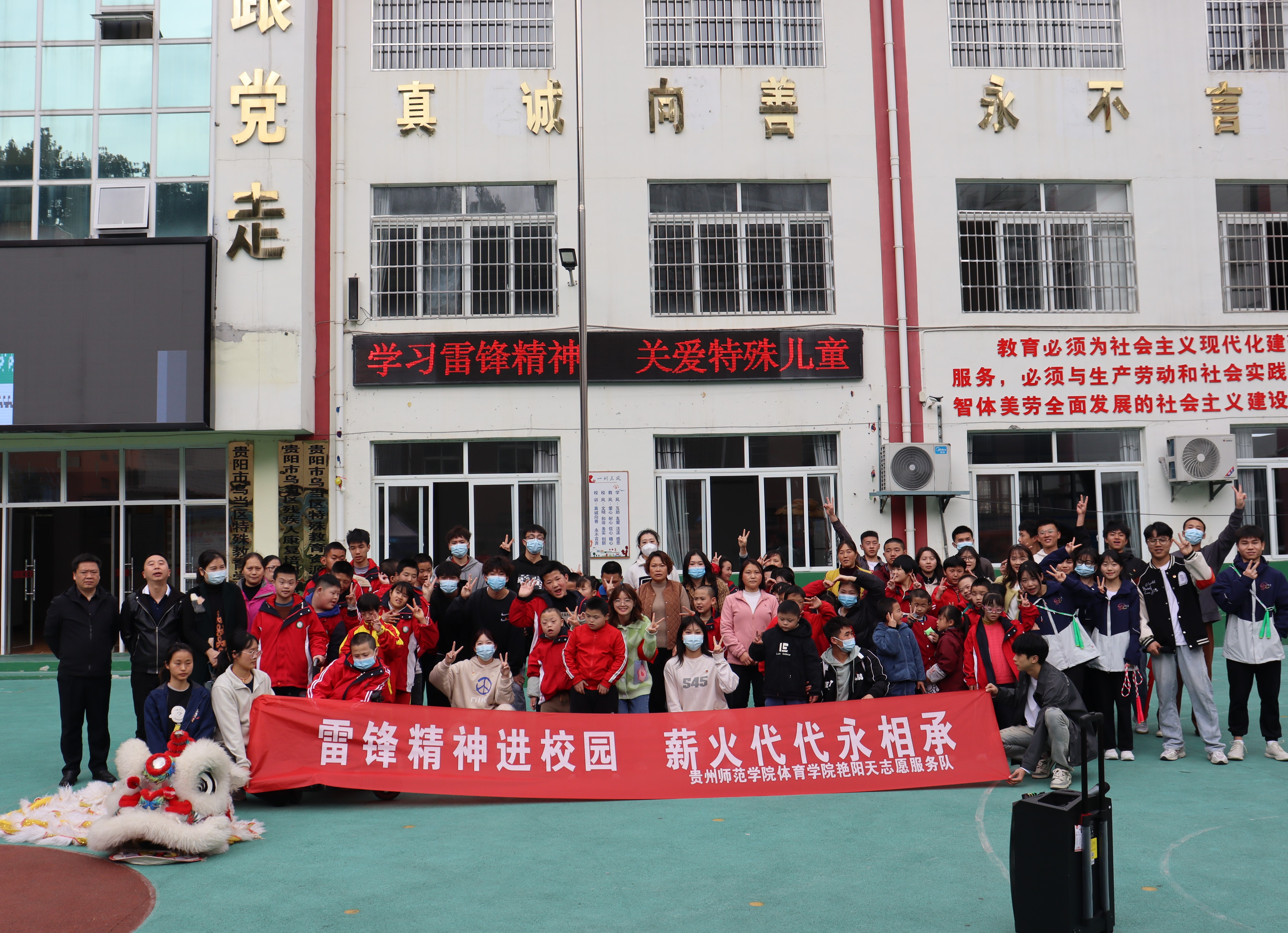 “艳阳天志愿服务队”、2022级体育学大类一班团支部以“雷锋精神进校园,薪火代代有相承”为主题,于3月16日前往乌当区特殊教育学校开展“学雷锋”活动。