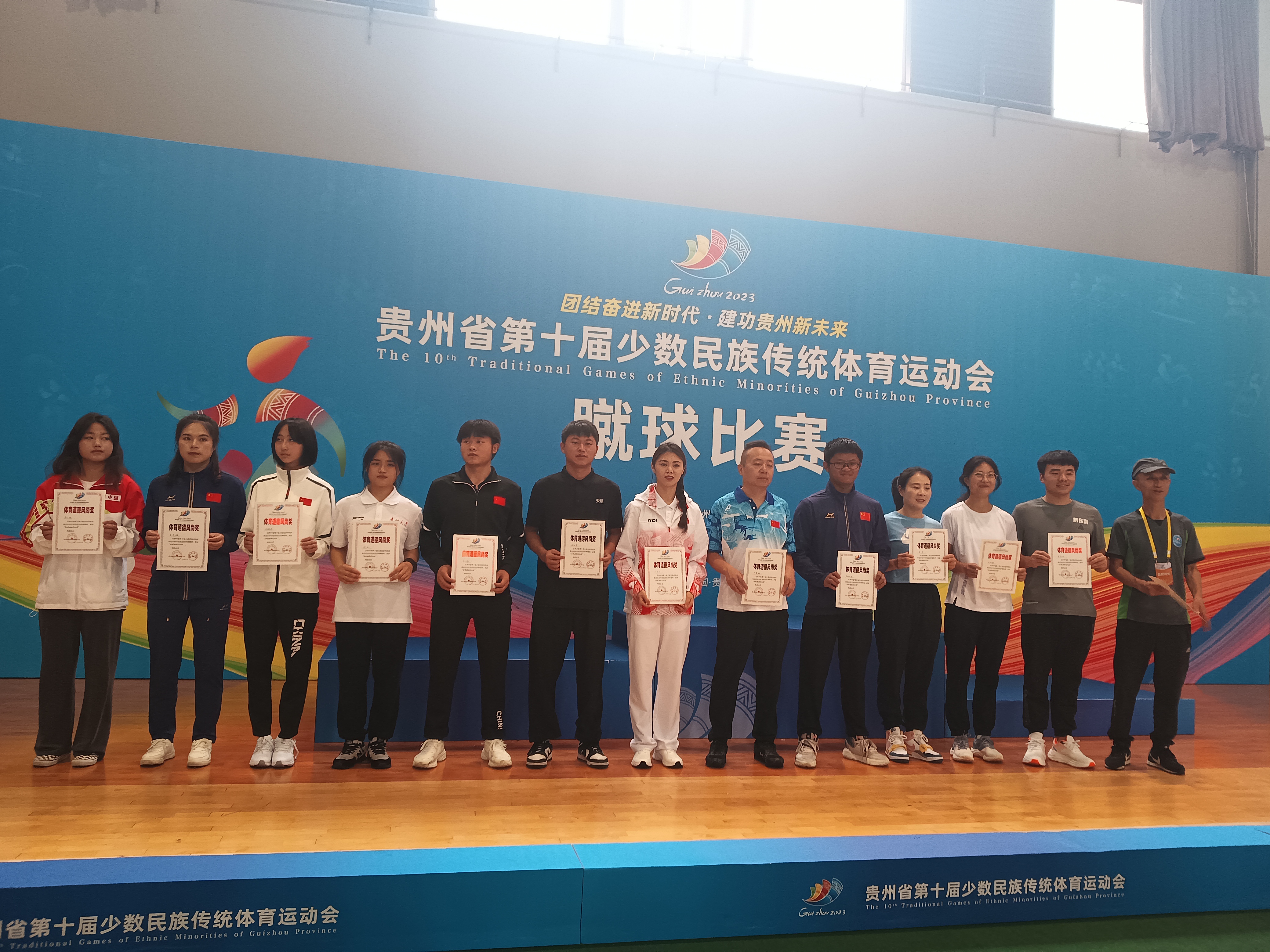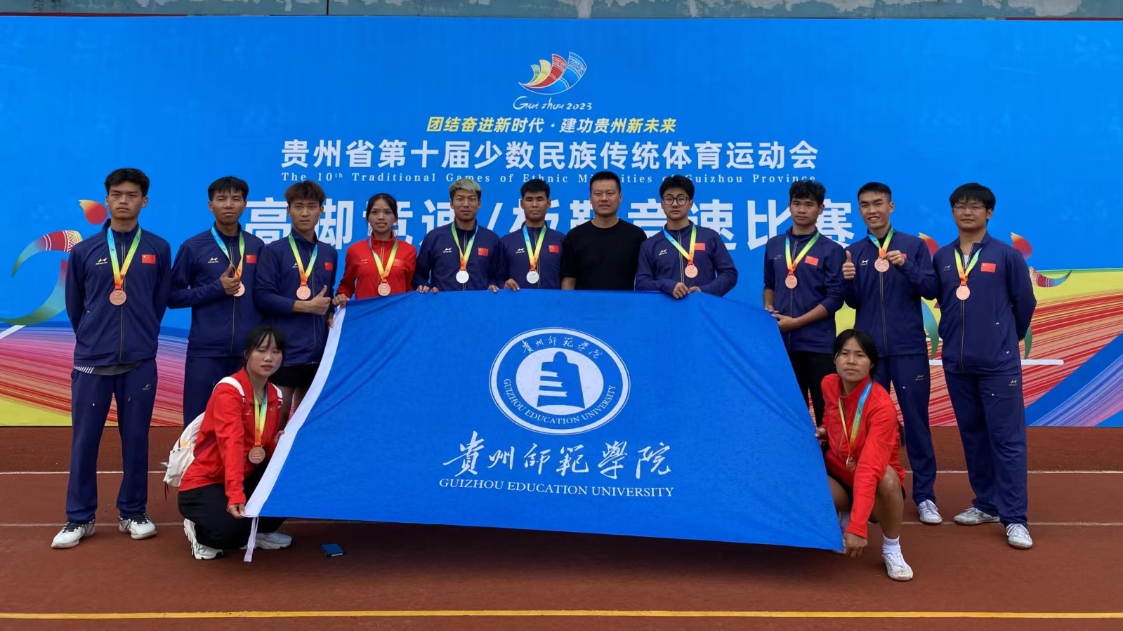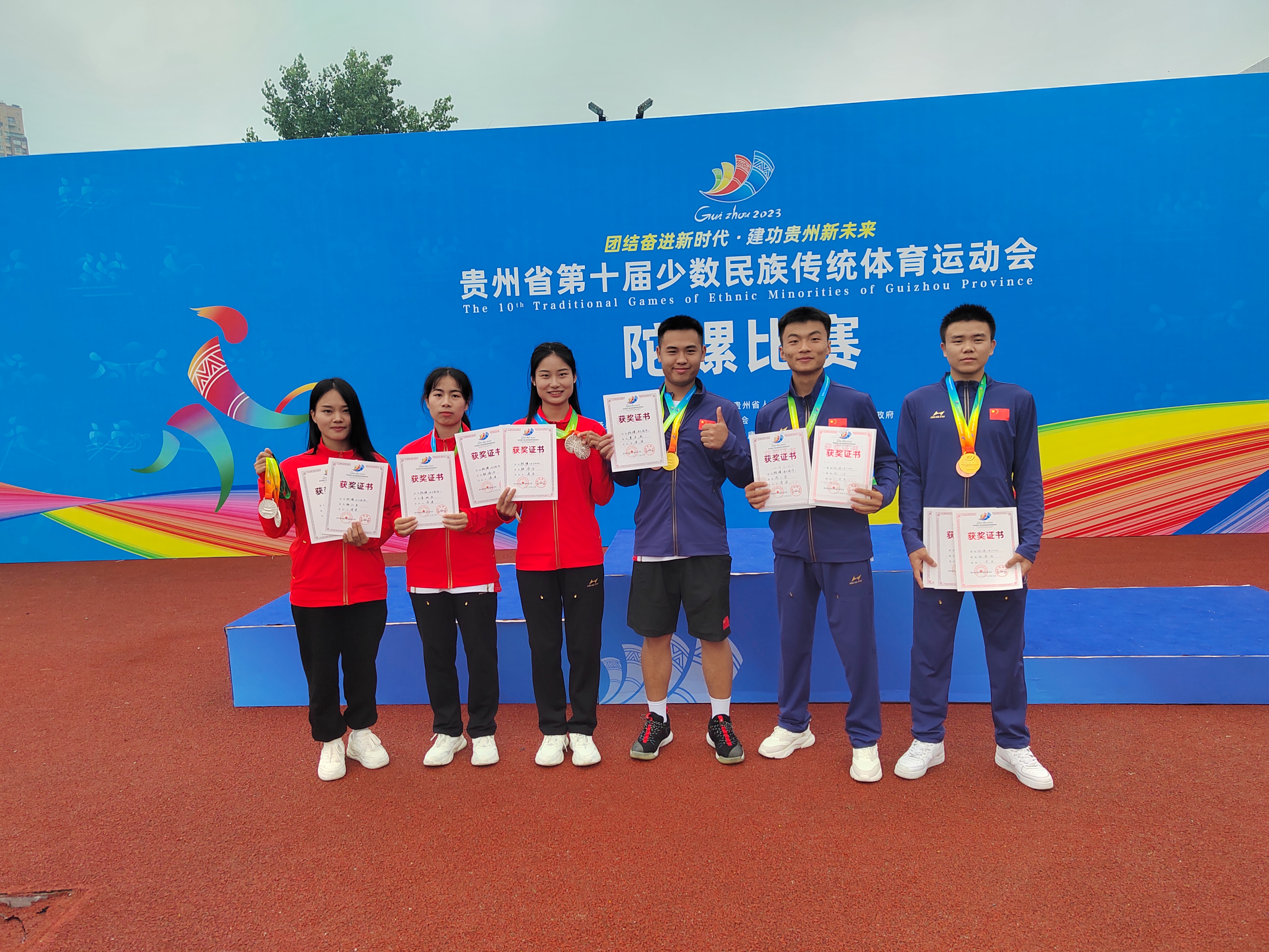 6月11至16日,贵州省第十届少数民族传统体育运动会在贵阳开赛,经过6天的激烈角逐,我校代表团共斩获一等奖1项(陀螺男子双打)、二等奖3项(高脚竞速男子2×200米接力、陀螺女子团体赛、陀螺女子双打)、三等奖7项(板鞋竞速男子2×100米接力、高脚竞速女子4×100米接力、蹴球女子个人、蹴球女子双人、表演项目花样跳绳、陀螺男子团体、押加68公斤级)的优异成绩,同时也创造了所有参赛项目全部获奖的记录。此外,由我校18名学生组成的花样跳绳队代表贵阳市参加表演项目的比赛,以及6名学生代表贵阳市参加独竹漂项目的比赛,并分别取得了较好的成绩。