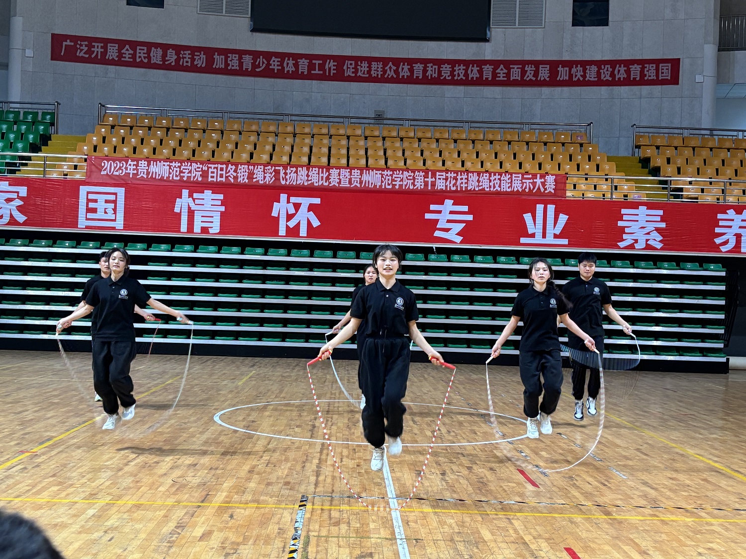 花样跳绳技能展示大赛活动在体育馆隆重举行,本次比赛本着“友谊第一,比赛第二”的原则,让同学们在严寒的冬季,走出教室,点燃运动的激情,焕发青春的光彩。