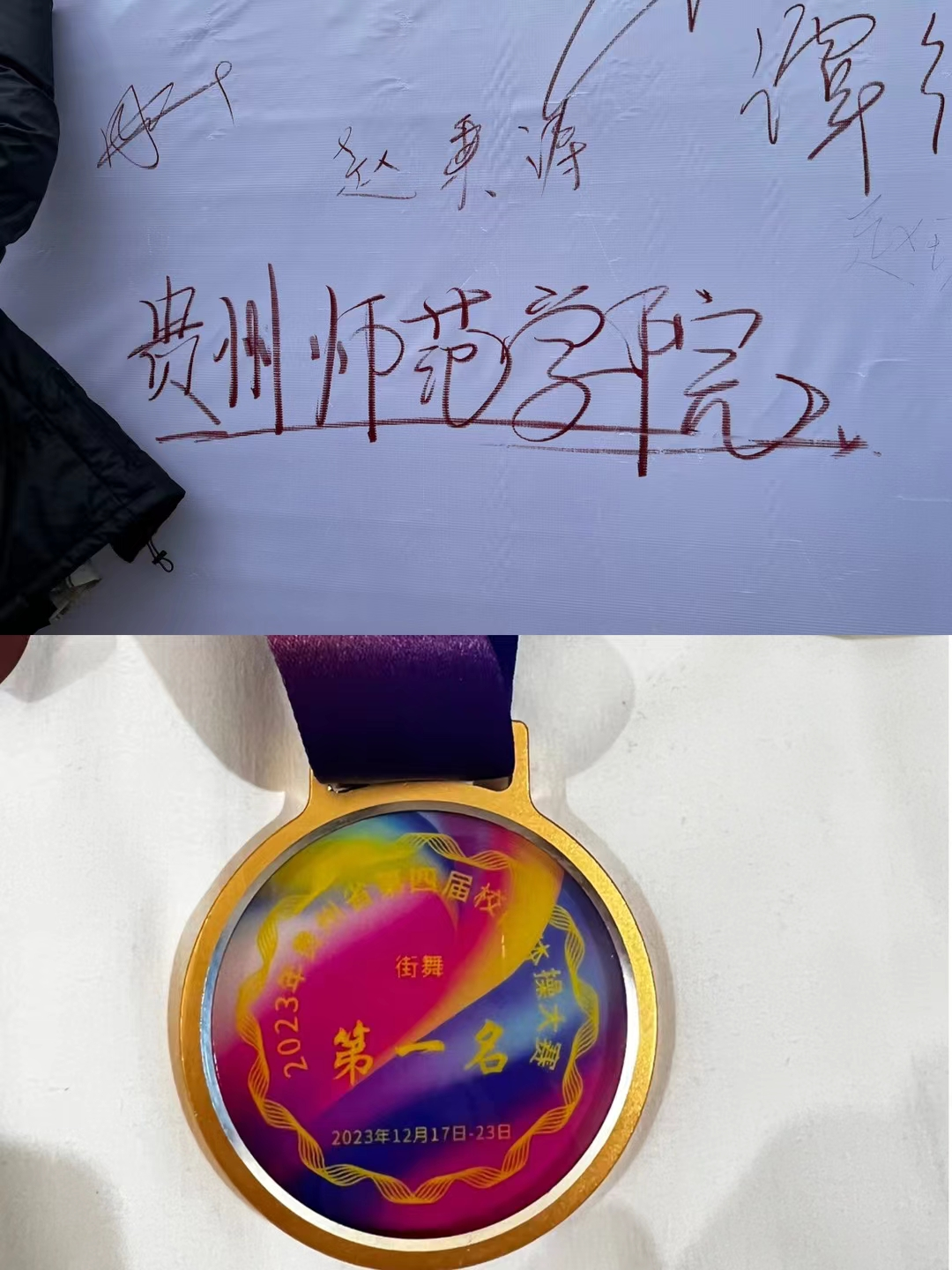 通过近两个月的刻苦训练,我校街舞队在本届贵州省校园体操大赛街舞项目的九支高校参赛队伍中脱颖而出,以8.87的高分斩获第一名!