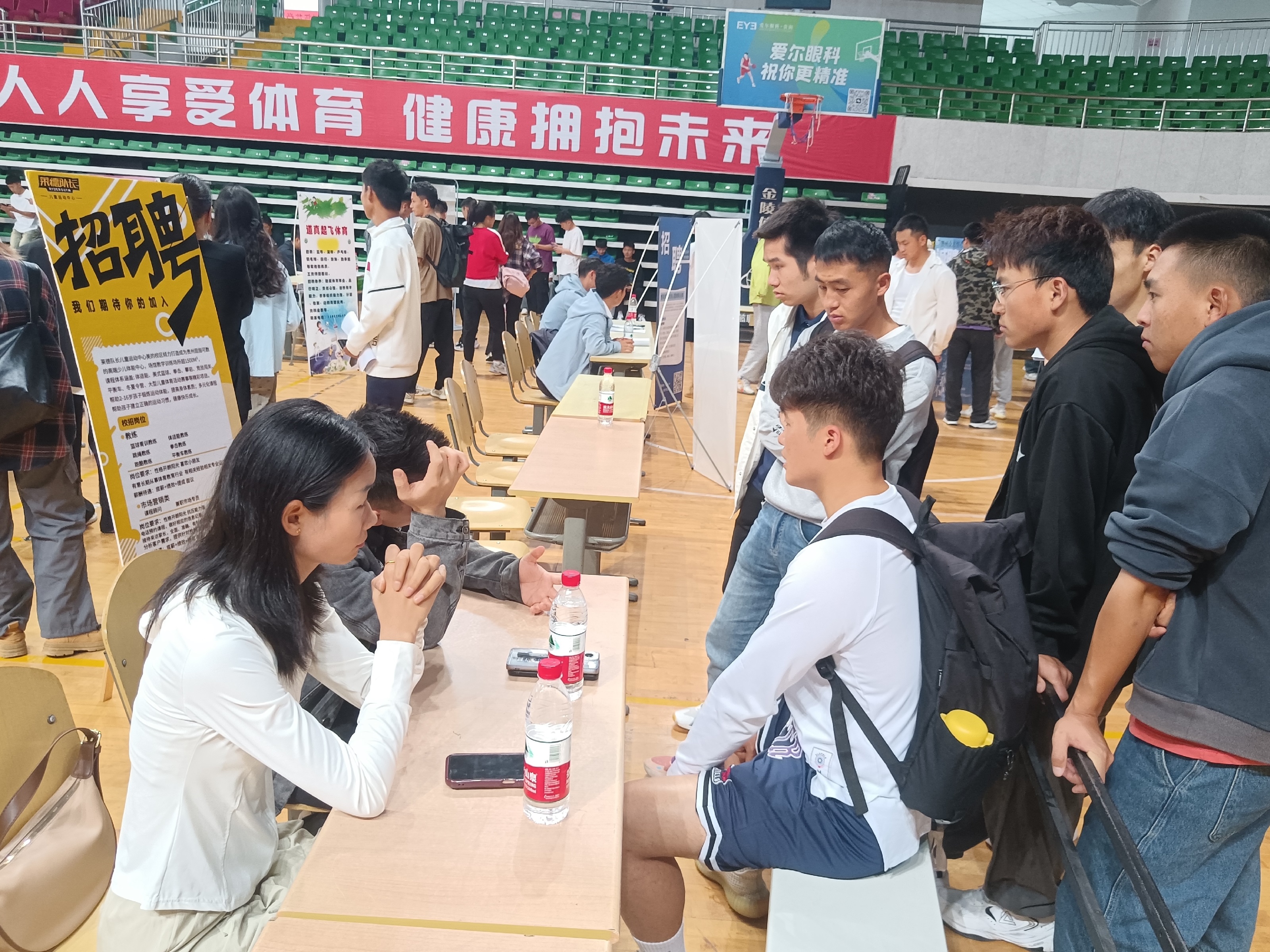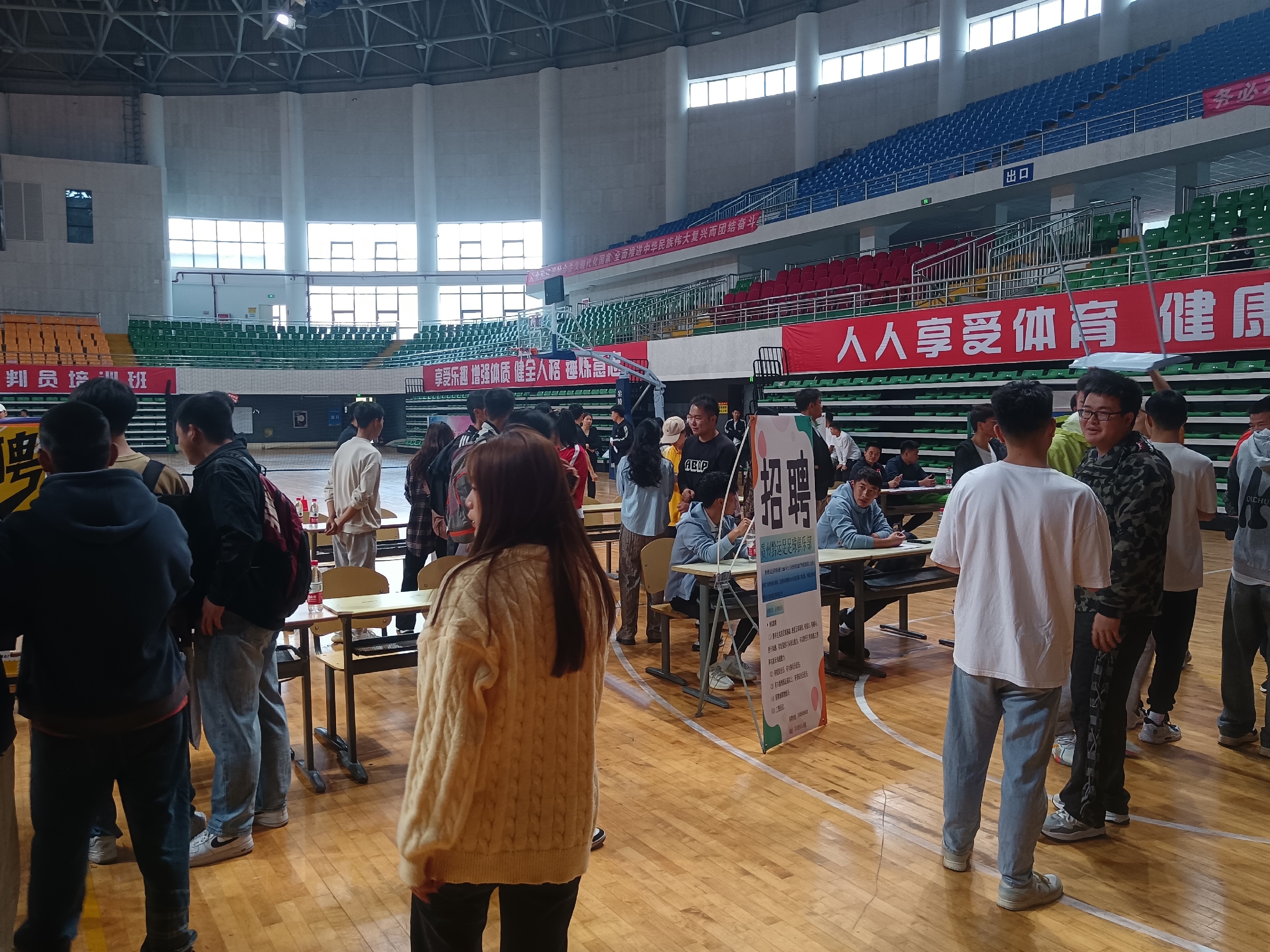 在体育馆开展2024年“体育类就业专场”招聘会。