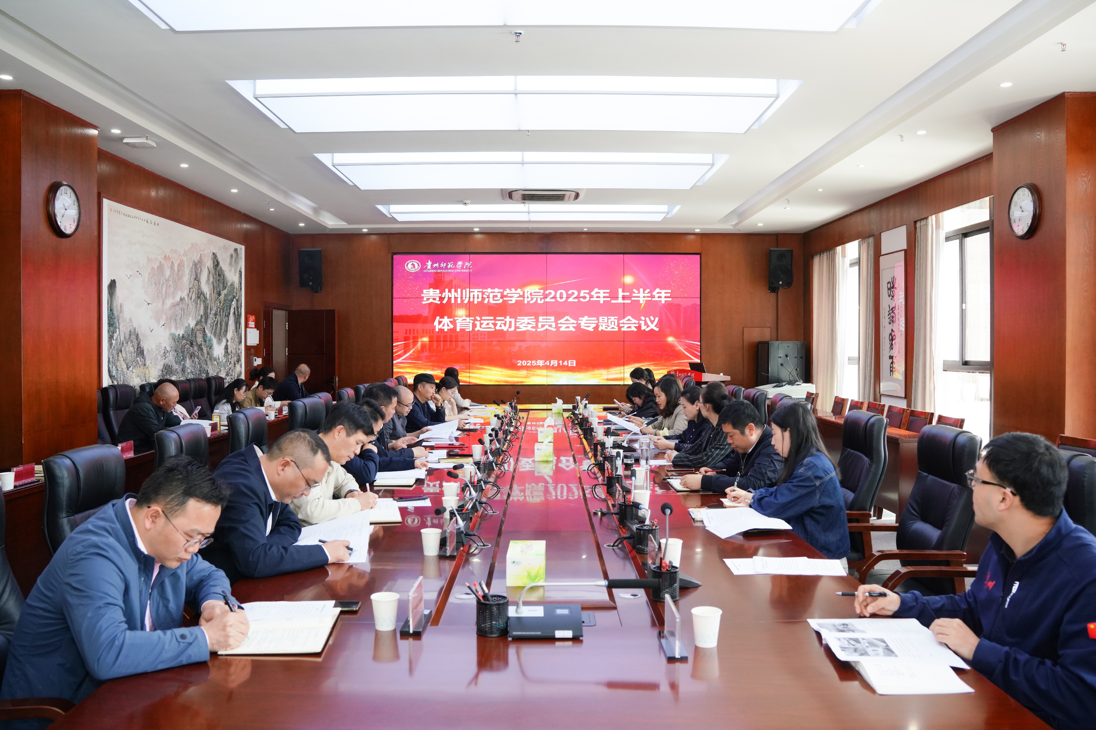 为深入贯彻落实党的二十大、二十届三中全会精神,习近平总书记关于教育、体育工作的重要论述和全国教育大会精神,全面落实党中央、国务院和省委、省政府“关于全面加强和改进新时代学校体育工作”的决策部署和省教育厅《关于开展2025年全省千万师生阳光体育运动的通知》工作要求,4月14日,我校在信息楼二楼会议室召开2025年度上半年体育运动委员会专题会议。校党委委员、副校长任洁出席会议;校体育运动委员会全体成员及体育运动委员会办公室全体人员参加会议。会议由校体育运动委员会办公室主任邬孟君主持。