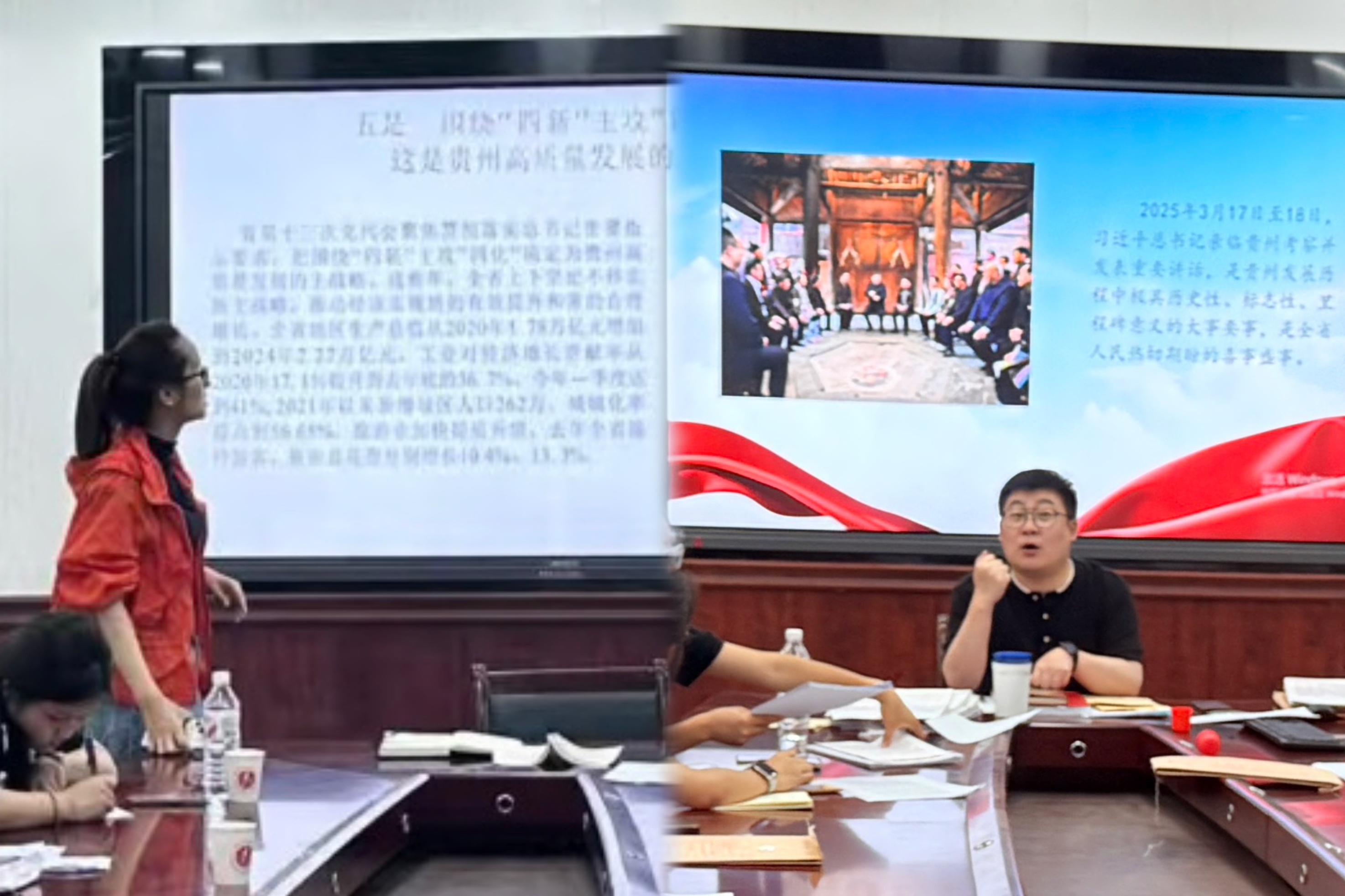 举行深入学习贯彻习近平总书记在贵州考察时重要讲话精神专题宣讲会。学院创新采用“理论+实践”双人宣讲模式,陈思娜与王天宇两位学生党支部书记联袂开讲。