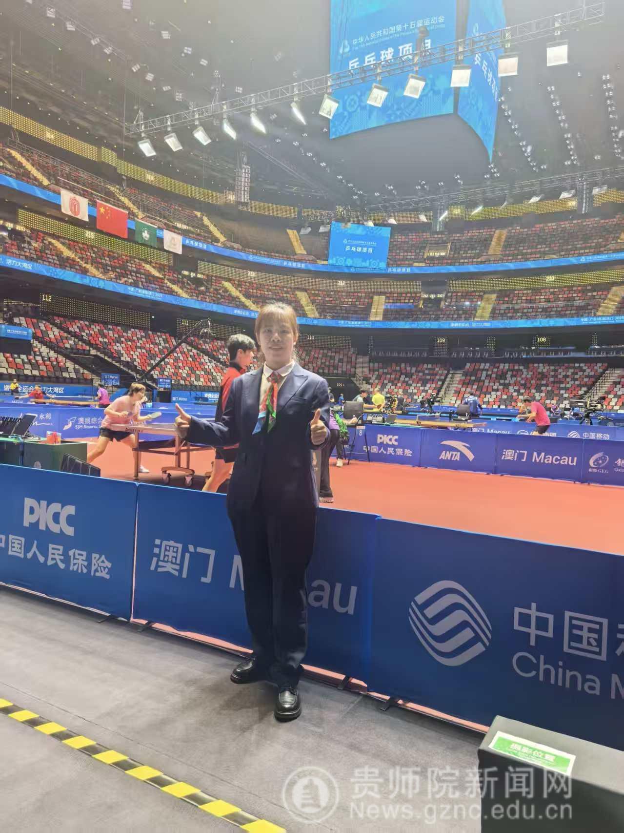 排球赛场,学院副院长、国家级裁判员朱继伟执掌男子20岁以下组别裁判工作,将多年全国大赛执裁经验融入顶级赛事服务;体操项目中,王奉涛老师受国家体育总局体操运动管理中心选派,跨青年组与成年组执裁,以全面专业素养赢得认可;足球赛场,刘新冬老师经国家体育总局及中国足协选拔,亮相女子成人组决赛阶段执裁工作,在高强度对抗中展现精准判罚能力;乒乓球项目里,何海艳老师经贵州省乒协推荐、中国乒协审核通过,担任赛事技术官员,专业水准获国家级赛事高度肯定。教师们在全运赛场的出色表现,不仅是个人职业生涯的荣耀时刻,更是学院体育学科建设水平与师资队伍实力的集中展现,显著提升了学校在全国体育界的影响力与美誉度。