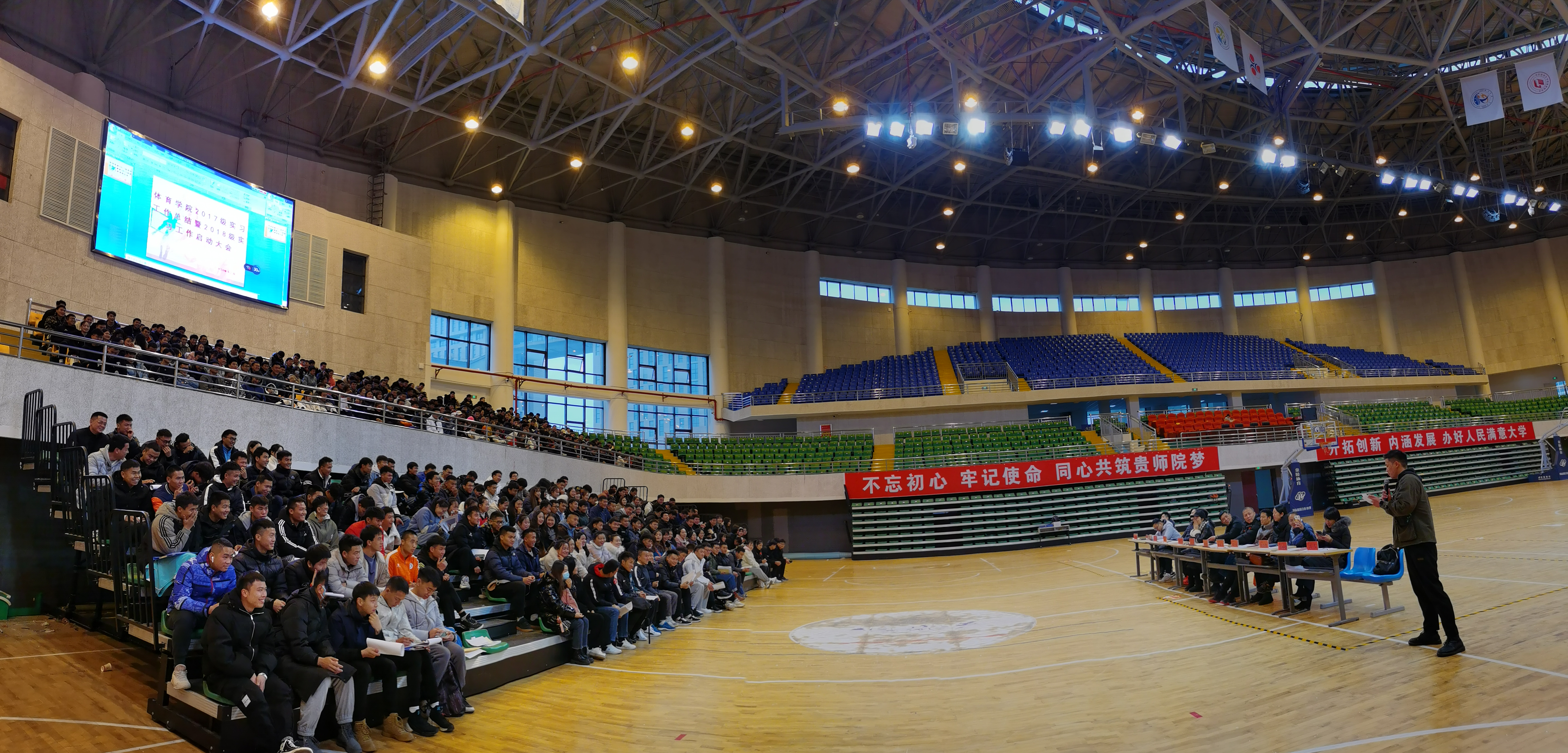 在体育馆召开2017级毕业生实习总结暨2018级实习启动大会。学院党委书记韩山、院长黄伟明、党委副书记邬孟君、副院长李延武、体育教育系主任吴小焱、休闲体育系主任万鹏、教学科研管理科科长朱继伟、各专业实习负责人、年级辅导员和全体2017级、2018级学生参加了此次会议。