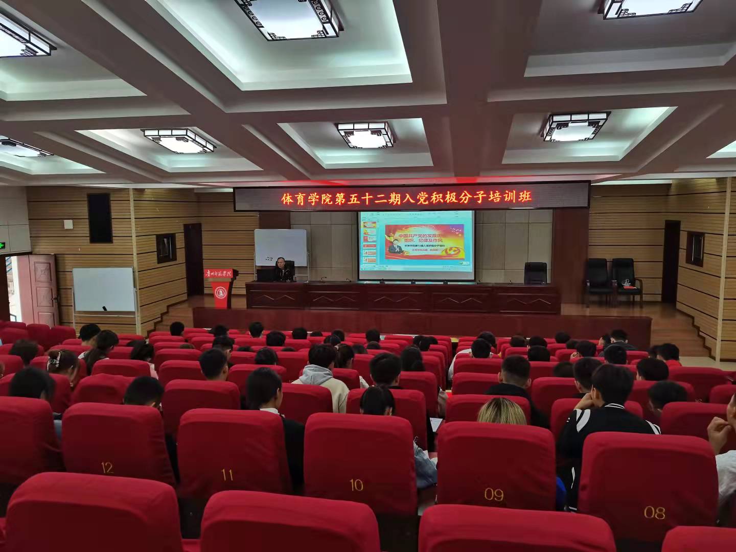 顺利完成了第52期入党积极分子的集中培训。经过团组织推优、党员推荐、党支部确认等环节,本次共确定86名入党积极分子(其中一名为教师)参加了培训。本次入党积极分子集中培训共安排了4次专题讲座、4次视频教学、1次交流讨论。