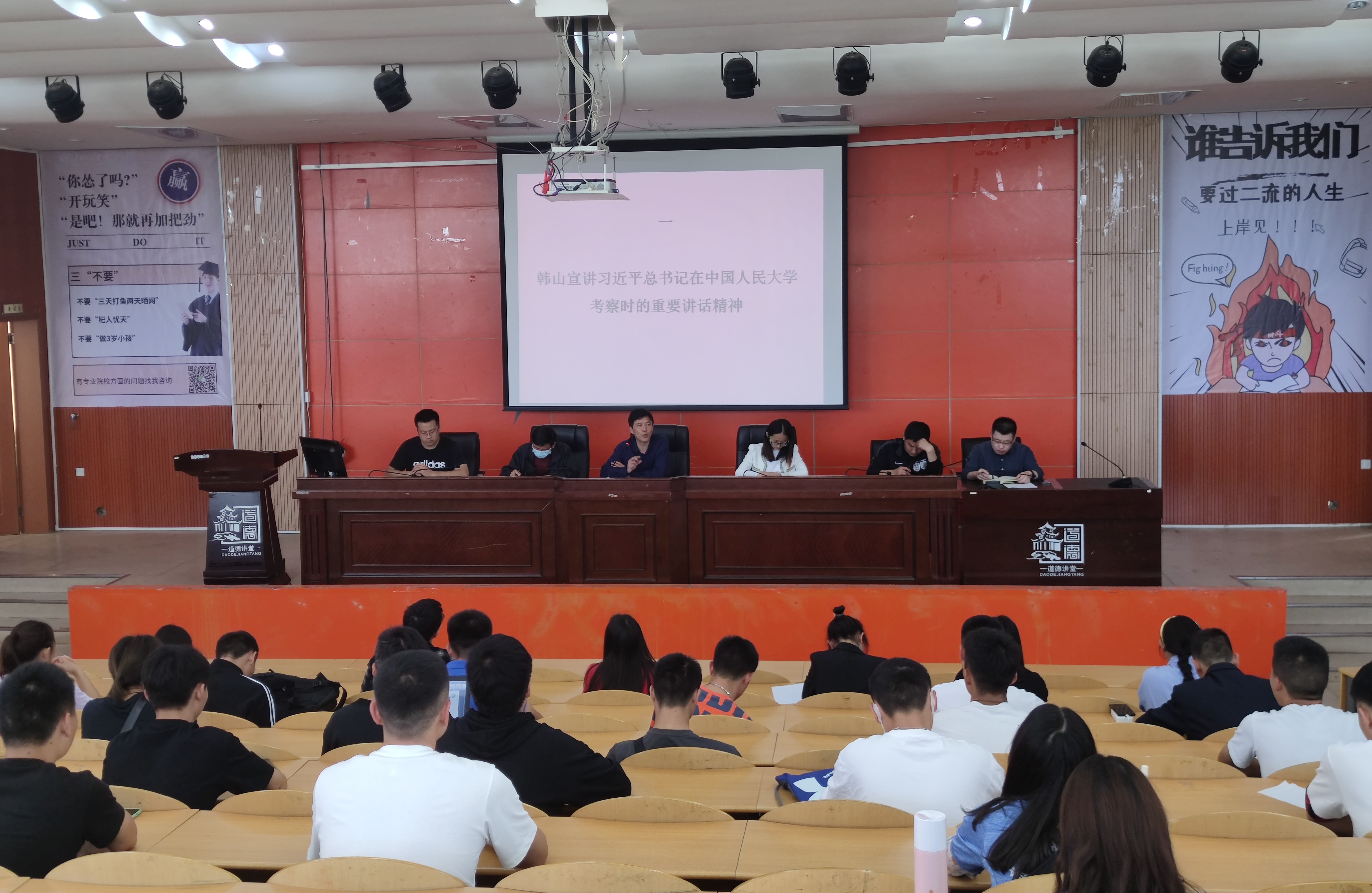 会议共进行了习近平总书记在中国人民大学考察时的重要讲话精神宣讲、毕业生党员离校前的教育培训、集中缴一次党费活动、重温入党誓词、党课教育(实地参观学习贵州教育史馆)等六项议程。首先,由韩山宣讲习近平总书记在中国人民大学考察时的重要讲话精神,他强调,广大学生党员一定要学习贯彻习近平总书记在中国人民大学考察时的重要讲话精神,牢记习近平总书记“希望全国广大青年牢记党的教诲,立志民族复兴,不负韶华,不负时代,在青春的赛道上奋力奔跑,争取跑出当代青年的最好成绩”,“坚定不移听党话、跟党走,努力成长为堪当民族复兴重任的时代新人”的亲切寄语。之后,刘华伟组织开展毕业生党员离校前的教育培训,着重就毕业生党员档案的完善整理、转接注意事项等进行了培训讲解。随后,在主持人的主持下,由韩山带领全体与会党员重温了入党誓词,以及通过网络途径开展了集体缴党费活动。最后,到贵州教育史馆以实地参观学习的形式,组织开展了以实地观摩学习贵州教育发展史为主要内容的党课教育活动。