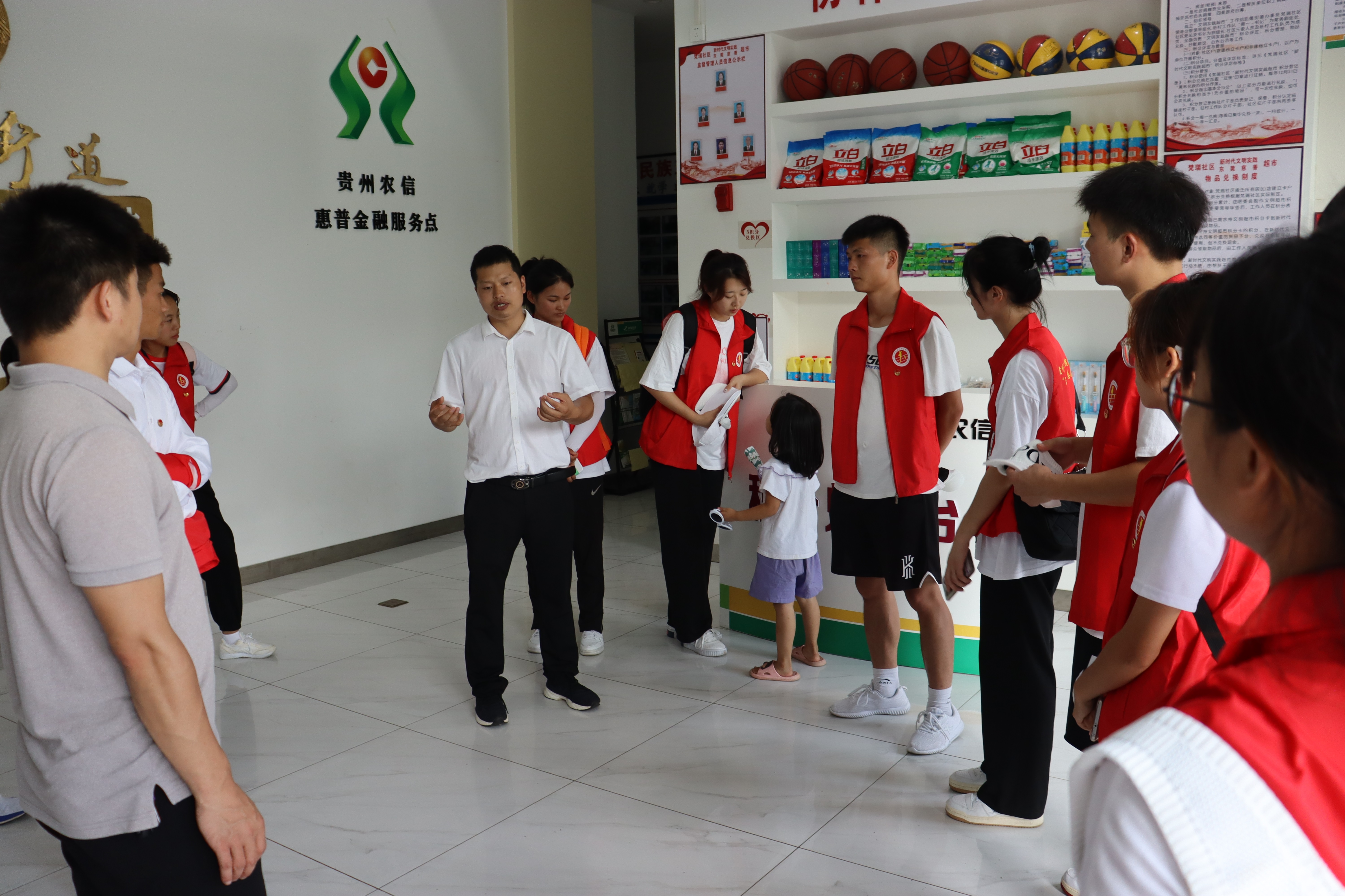 志愿者参观社区“微积分”兑换点及便民服务站
