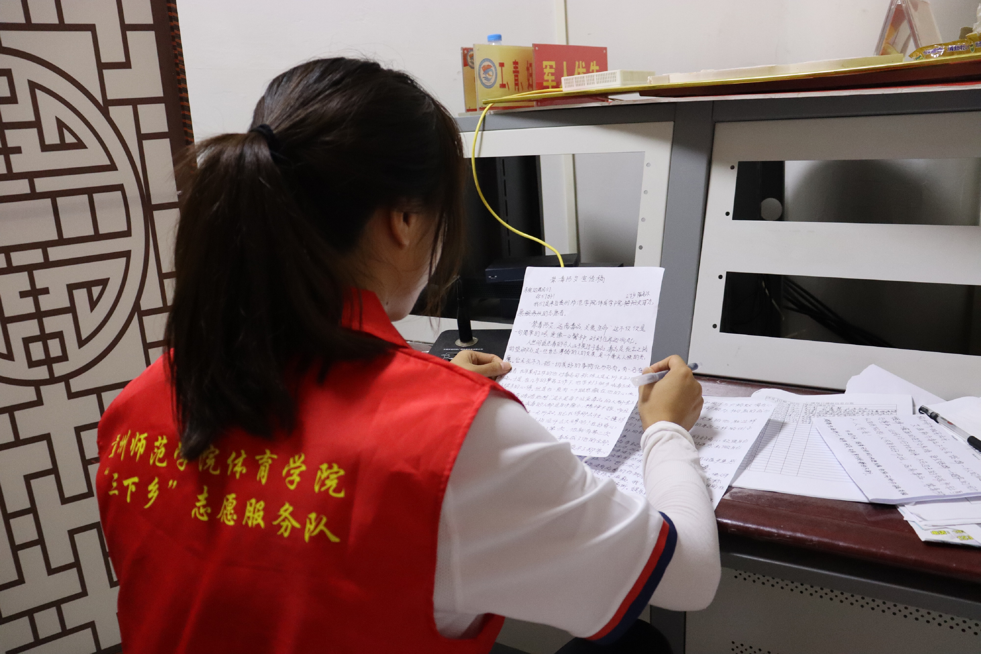 志愿者在广播站进行禁毒防艾知识科普宣读