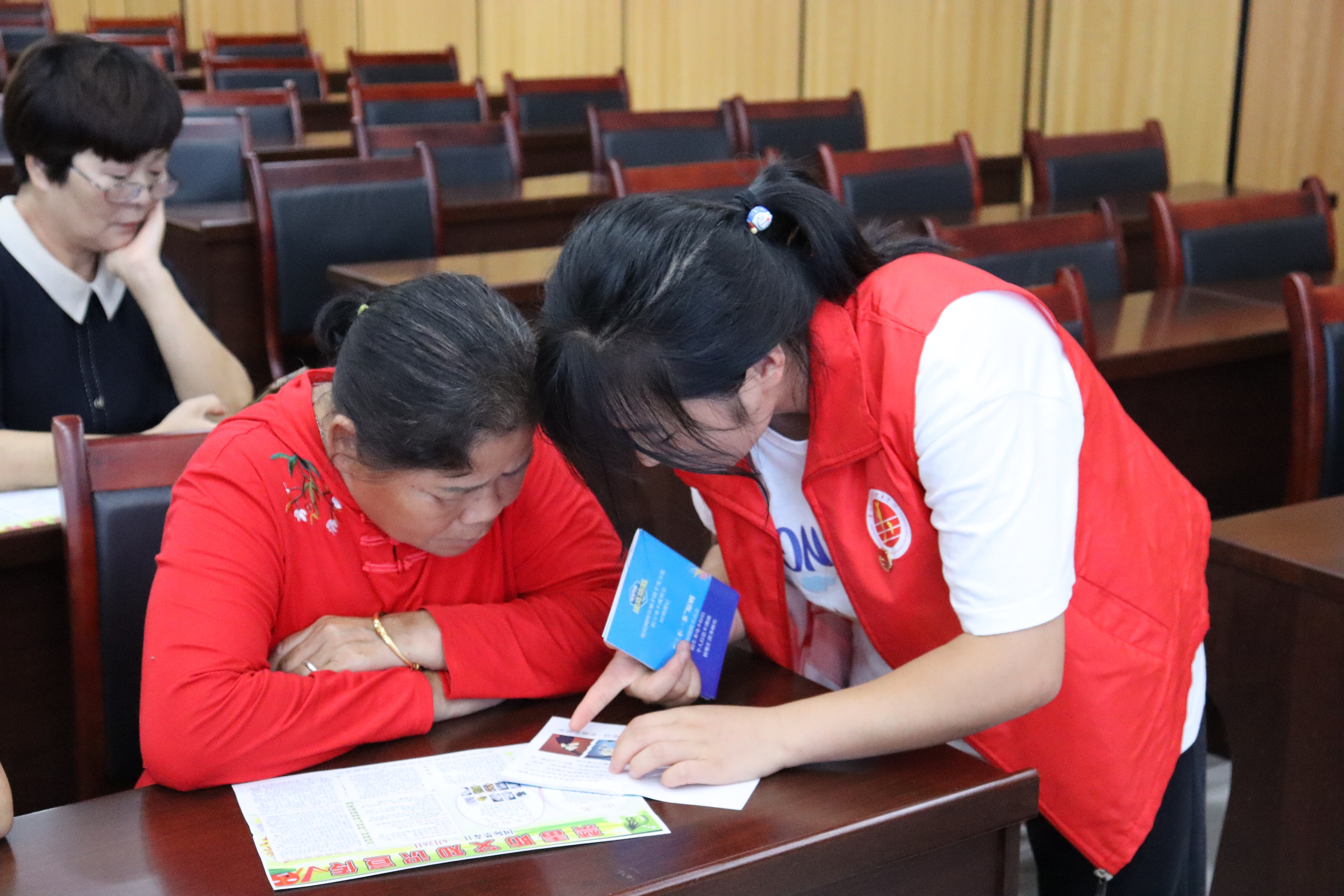 志愿者在为居民讲解防艾知识