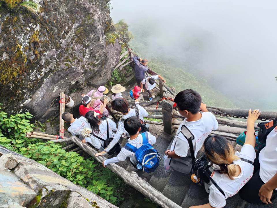 “梵旅”志愿服务团队赴贵州省铜仁市江口县梵净山景区,亲身体验梵净山之美,并在景区内开展志愿服务活动。