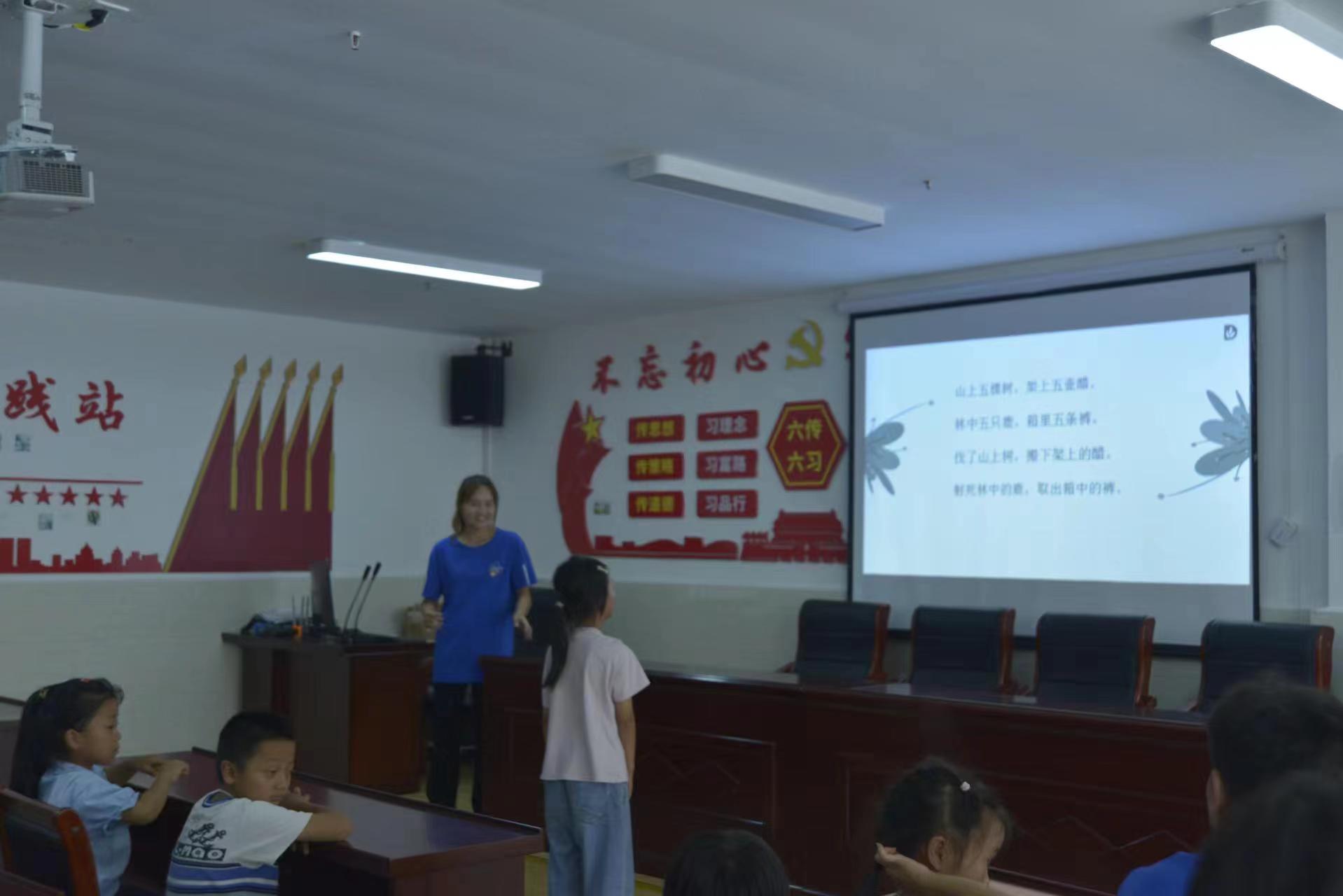 下午,志愿者们开展了“学好普通话”的教学活动。普通话是中国官方标准语言,也是全国各地最通用的语言之一。普通话有着丰富而准确的词汇和严谨的语法体系,能够更好地满足人们的沟通需求。在这次教学活动中,团队成员通过口语练习、听力训练和课堂互动的方式,努力帮助树立讲普通话的意识,以便孩子们日常生活中更加流利地使用普通话。同时,团队成员也鼓励孩子们多参与实践,如多用普通话与人交流、看新闻联播等方式,以加强他们的语言环境和应用能力。通过这样的教学活动,团队成员给孩子们打开了更广阔的沟通空间,帮助其提高语言表达能力。
