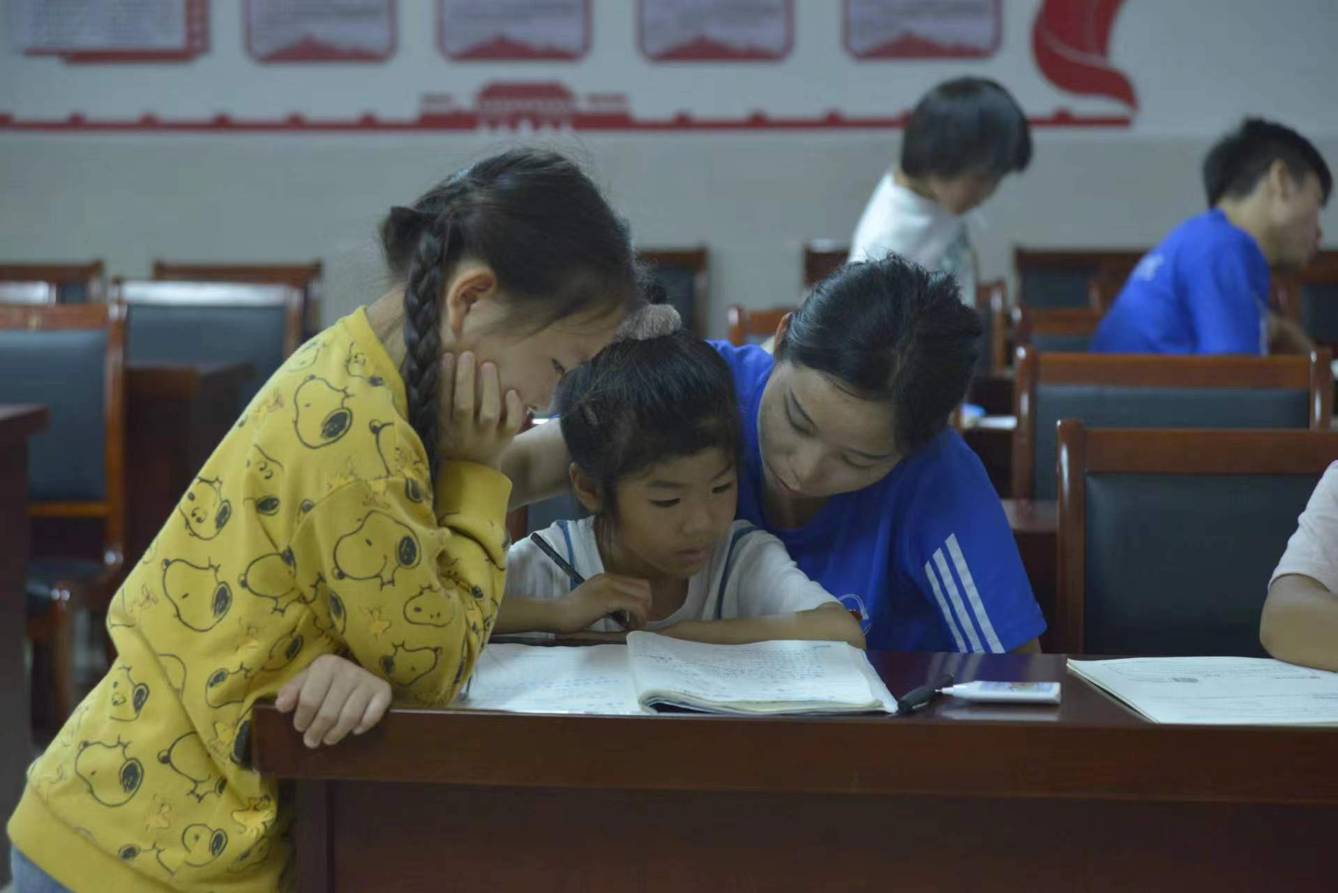 志愿者辅导小朋友写作业