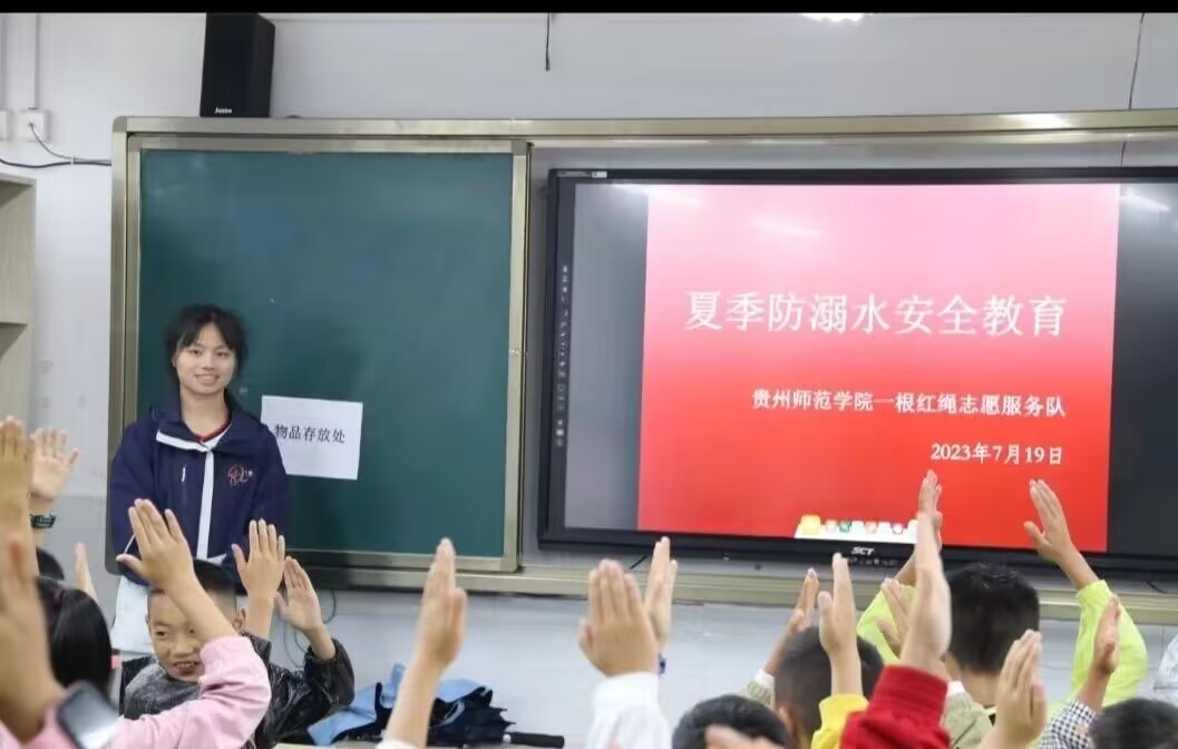 为全力做好易地扶贫搬迁“后半篇文章”,结合易地扶贫搬迁社区群众需求和青少年成长需要,落实“希望工程·陪伴行动”计划,让易地扶贫搬迁社区青少年“课余时间有人陪伴、兴趣特长有人指导、感恩奋进有人加油”。7月19日,我校“一根红绳志愿服务队”赴六盘水市水城区第二小学开展了丰富多彩的“三下乡”社会实践活动,服务对象包括水城区第二小学红山校区、严家寨校区和朝阳校区三个校区的同学。