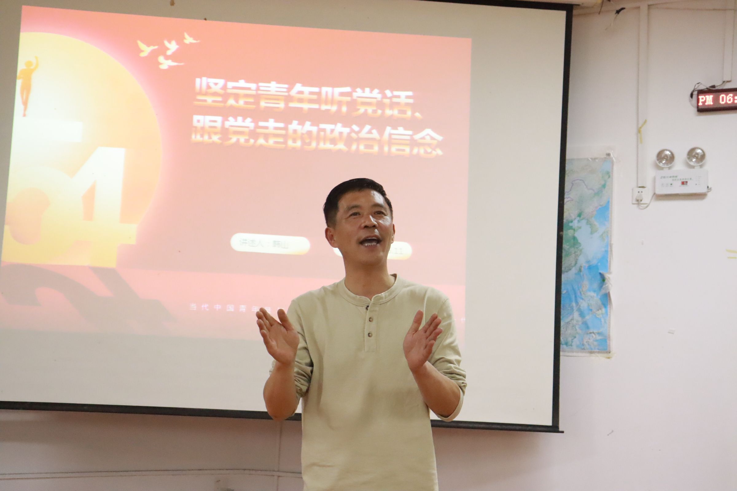 团委学生会指导老师杨友娣带领大家一起学习“中国共青团发展史及共青团基本理论”