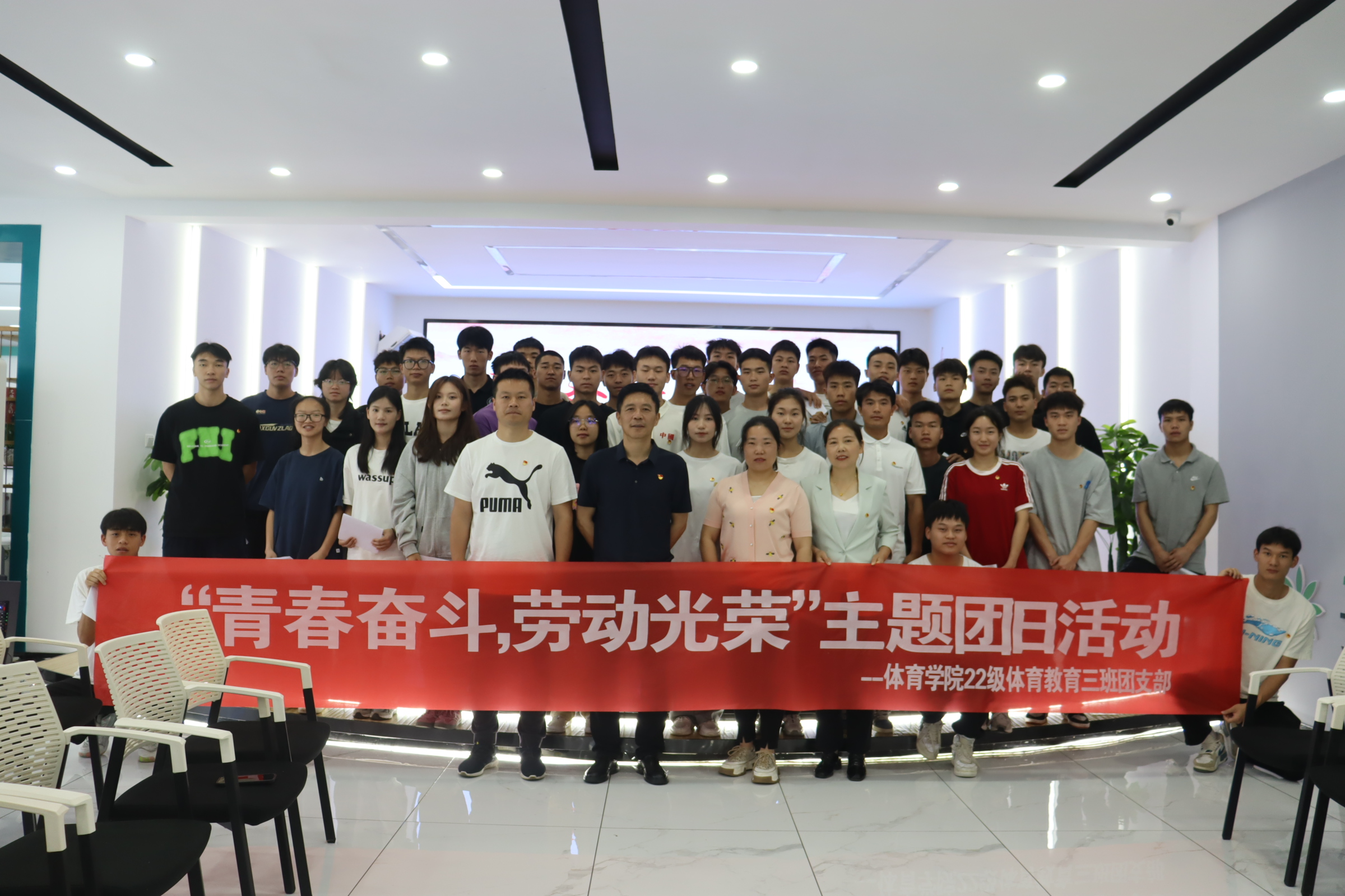 班子成员韩山、刘华伟、邬孟君,院团委指导教师杨友娣、省“五一”劳动奖章获得者王奉涛以及2022级体育教育三班全体学生参加了此次团日活动。